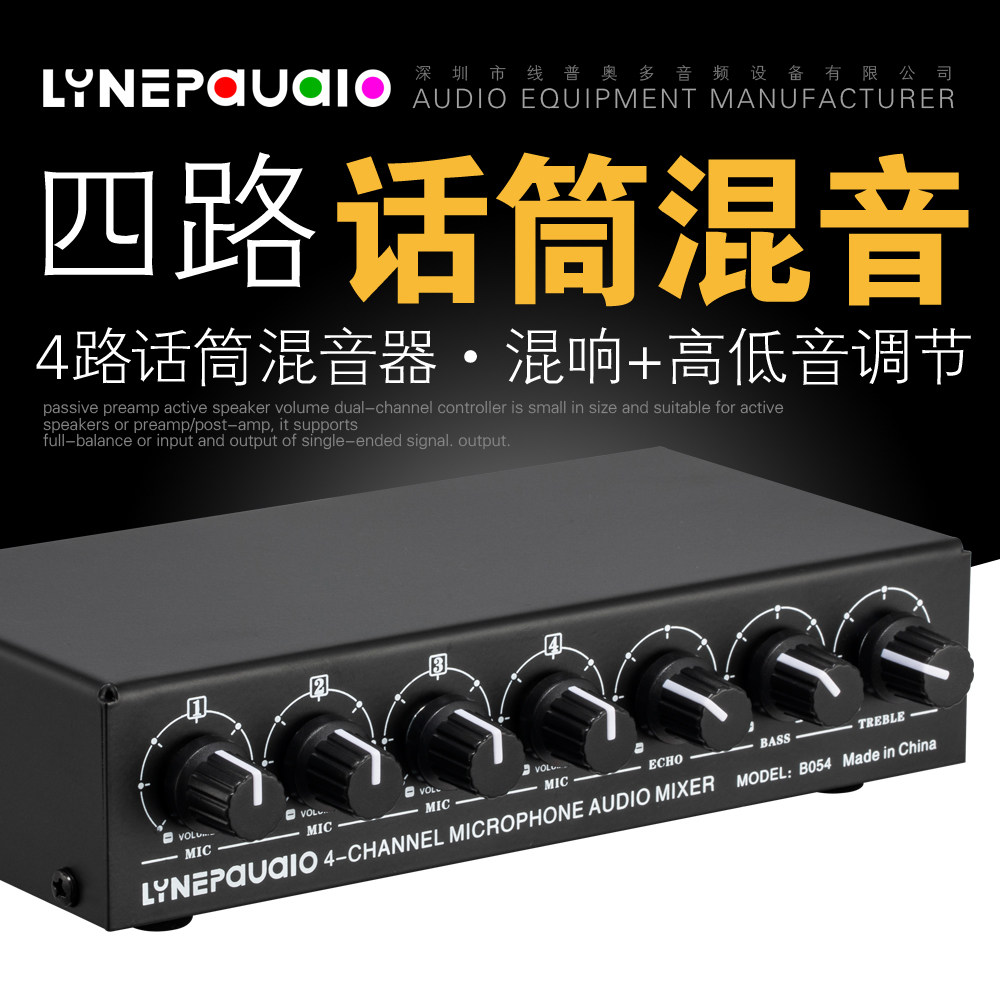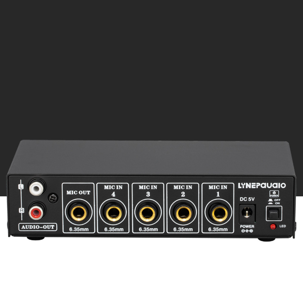 📚 4路话筒麦克风混音器 支持立体声输出带混响高低音调节USB 5V供电