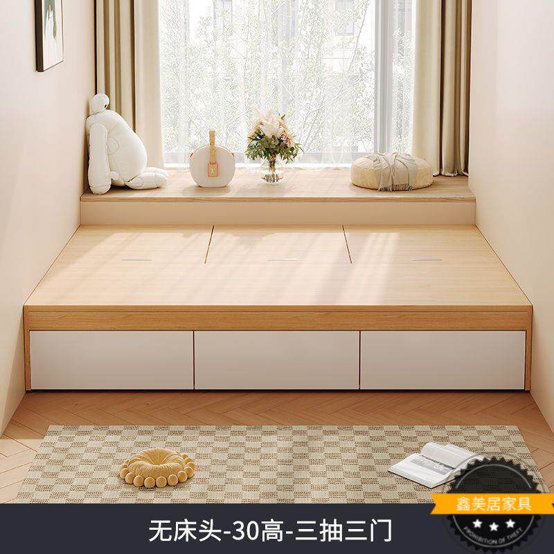 📚 实木榻榻米小床户型高箱物纳环DIF保卧室双人床现代简储约收单人