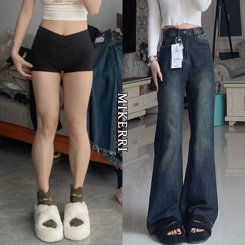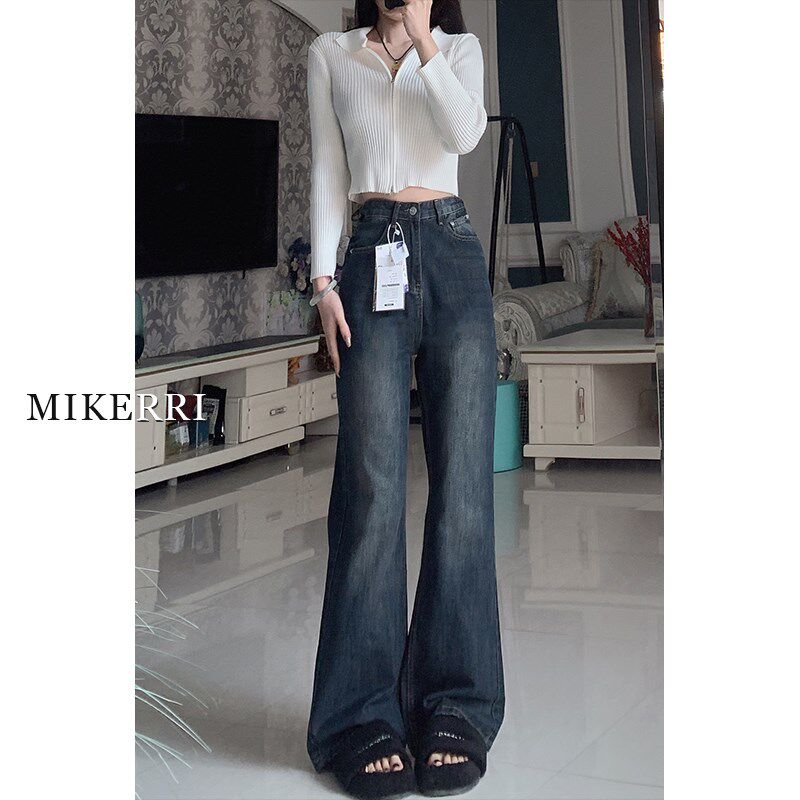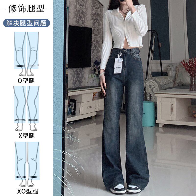 📚 速发绒形身材复古秋微喇牛仔裤春蓝加梨大码宽松马蹄裤