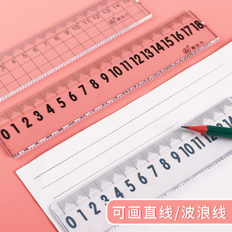 📚 加宽加厚预透明长直尺18cm尺子20cm波浪尺绘画制图工具套尺手账绘图比例尺雅克力多功能格尺小学生专用
