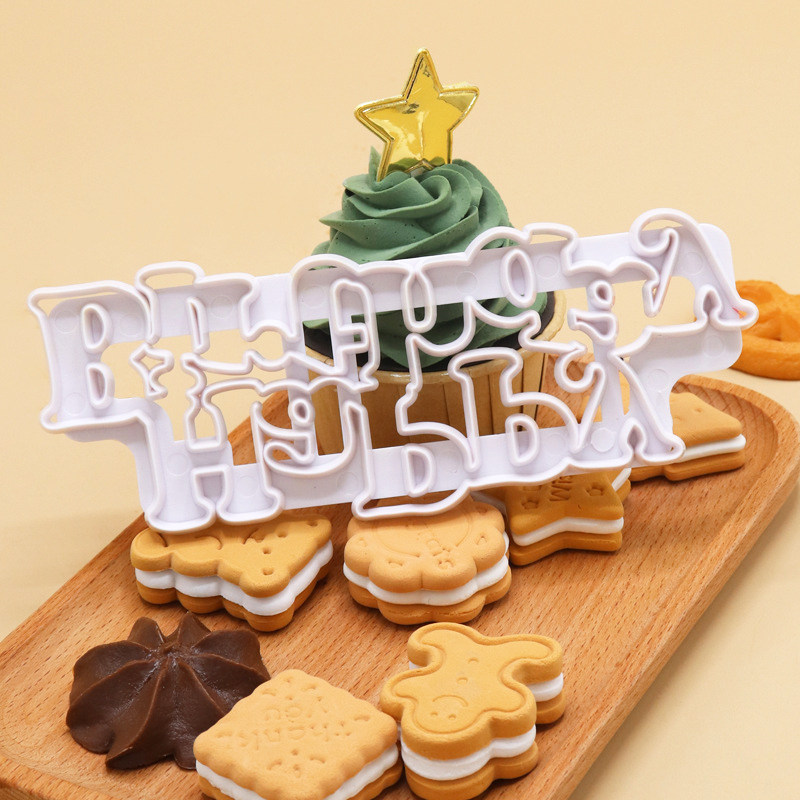 📚 塑料生日快乐翻糖模具饼干压模 happy birthday 切模 DIY蛋糕装饰