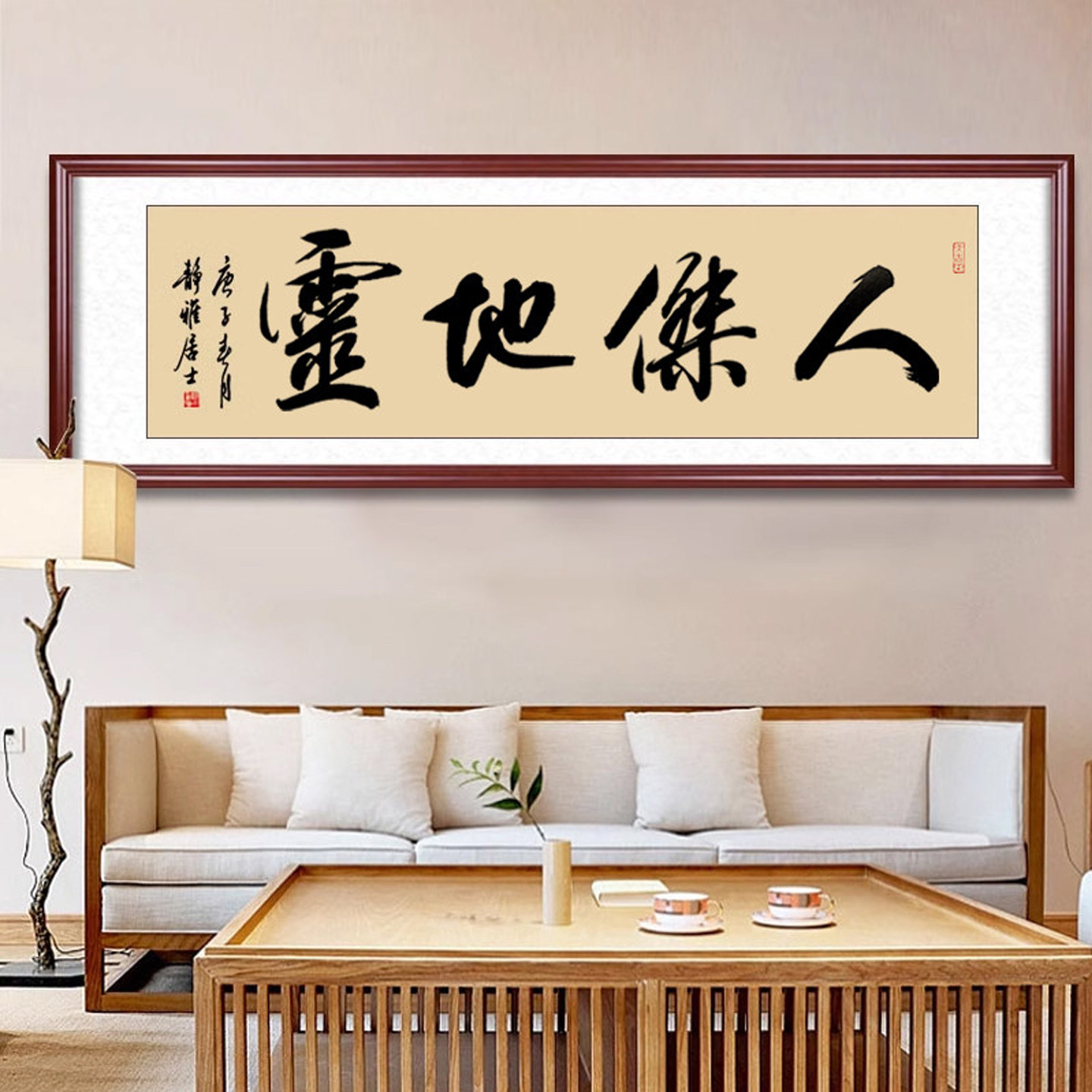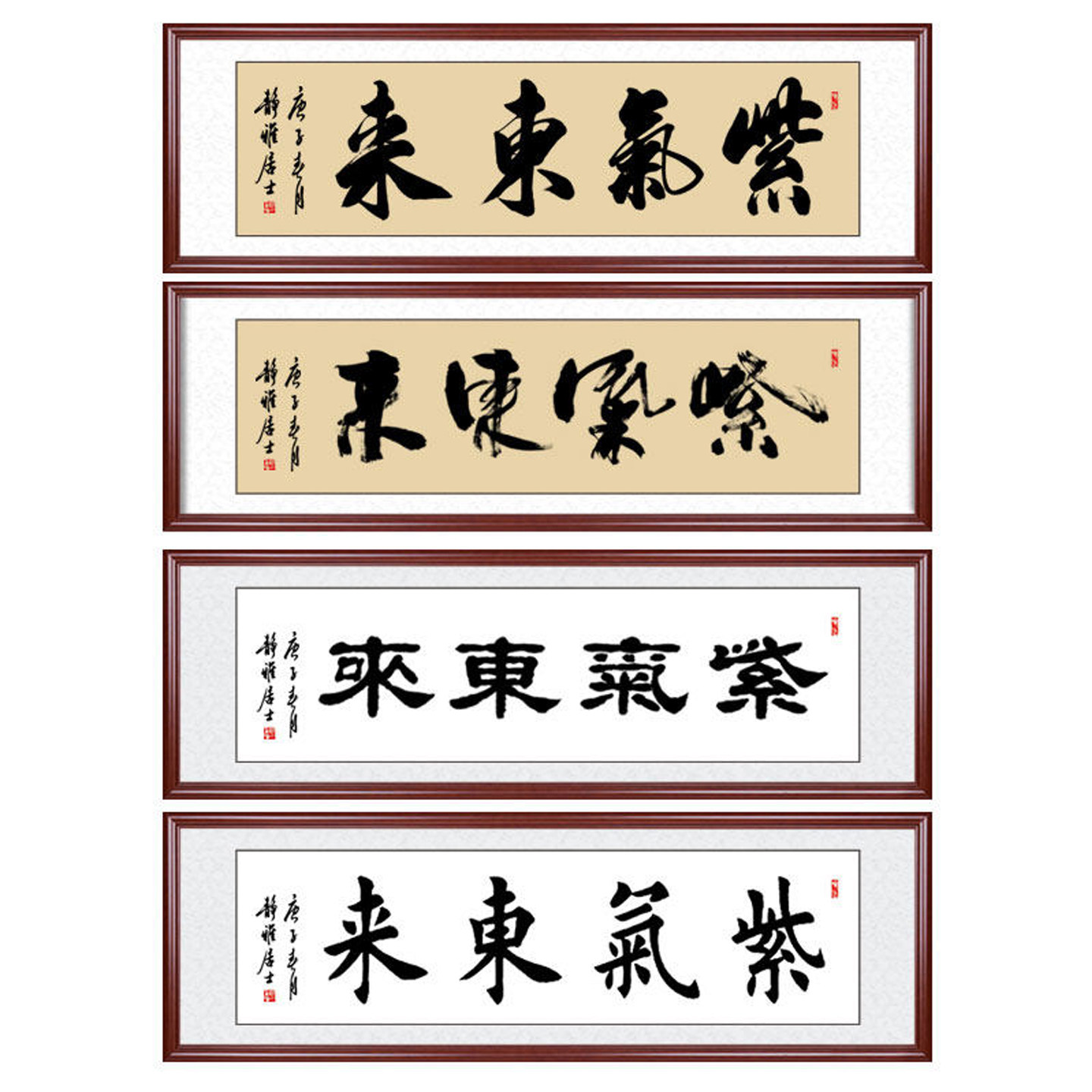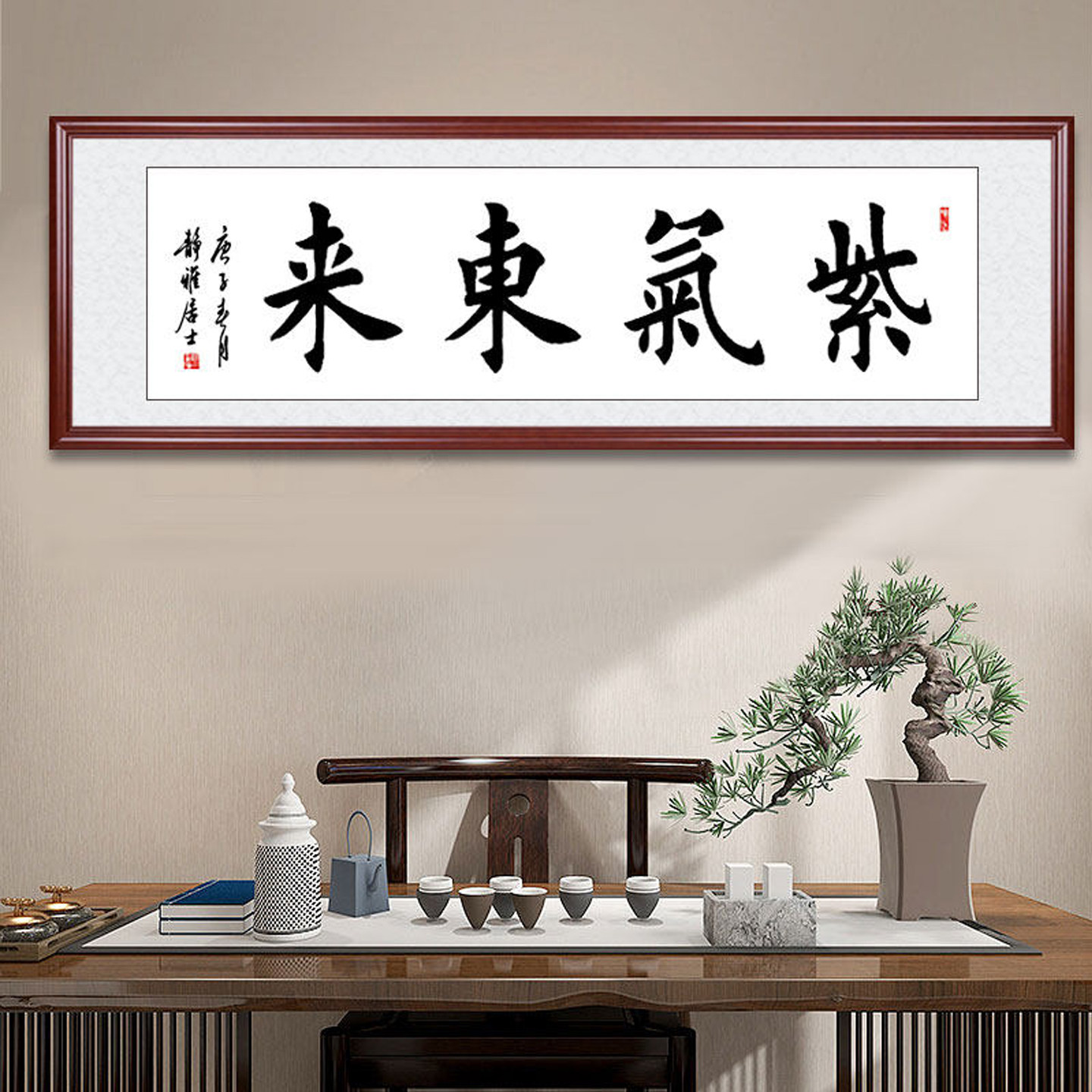 📚 紫气东来挂画横幅办公室手写书法作品字画客厅装饰墙画画框装裱