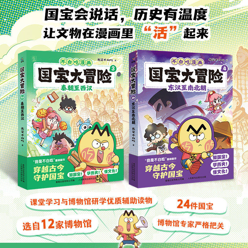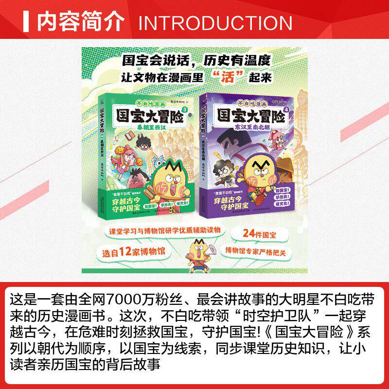 📚 单本可选 不白吃漫画国宝大冒险1234书全4册东汉至南北朝秦朝至西汉商朝至周朝史前至夏朝 历史漫画科普百科 儿童读物故事书