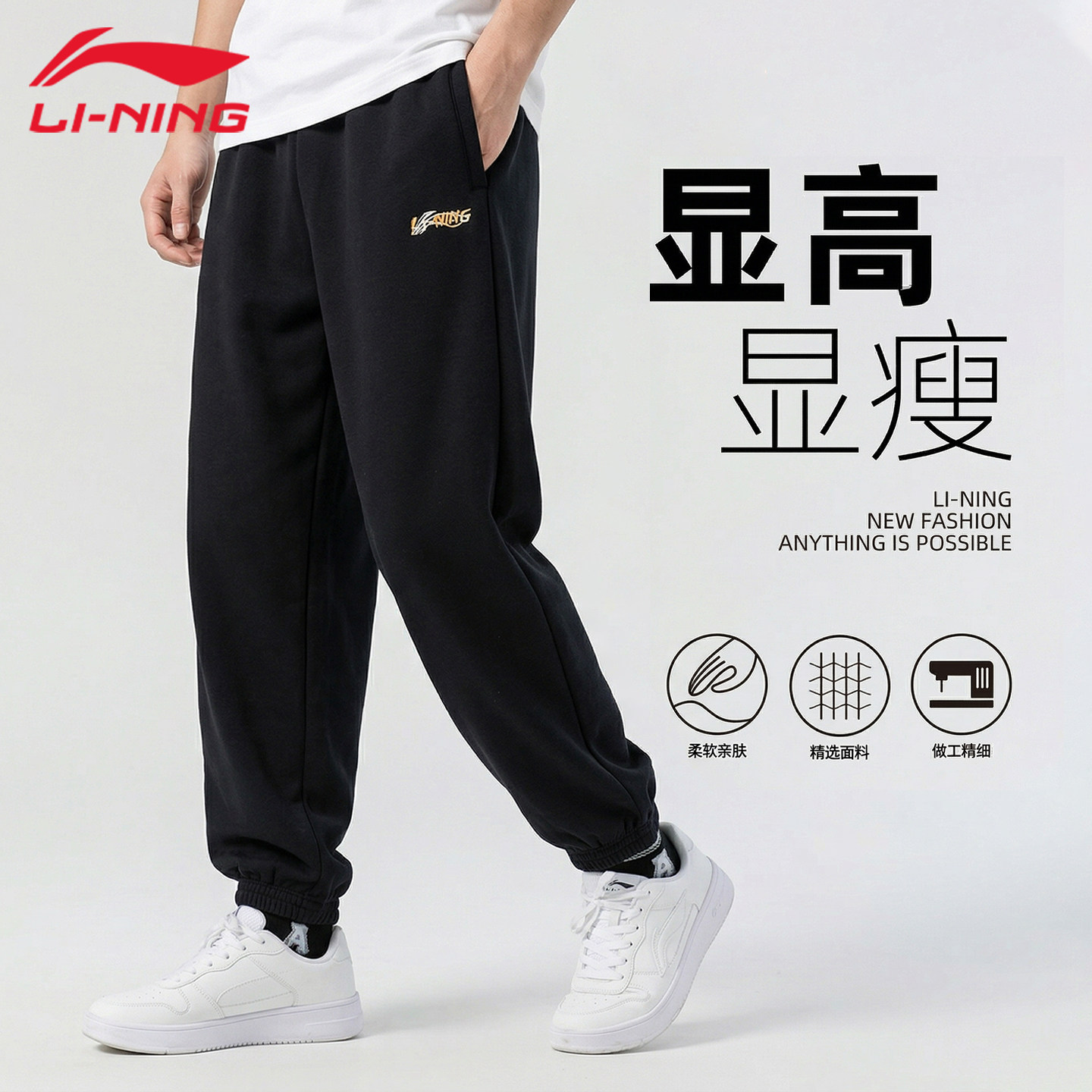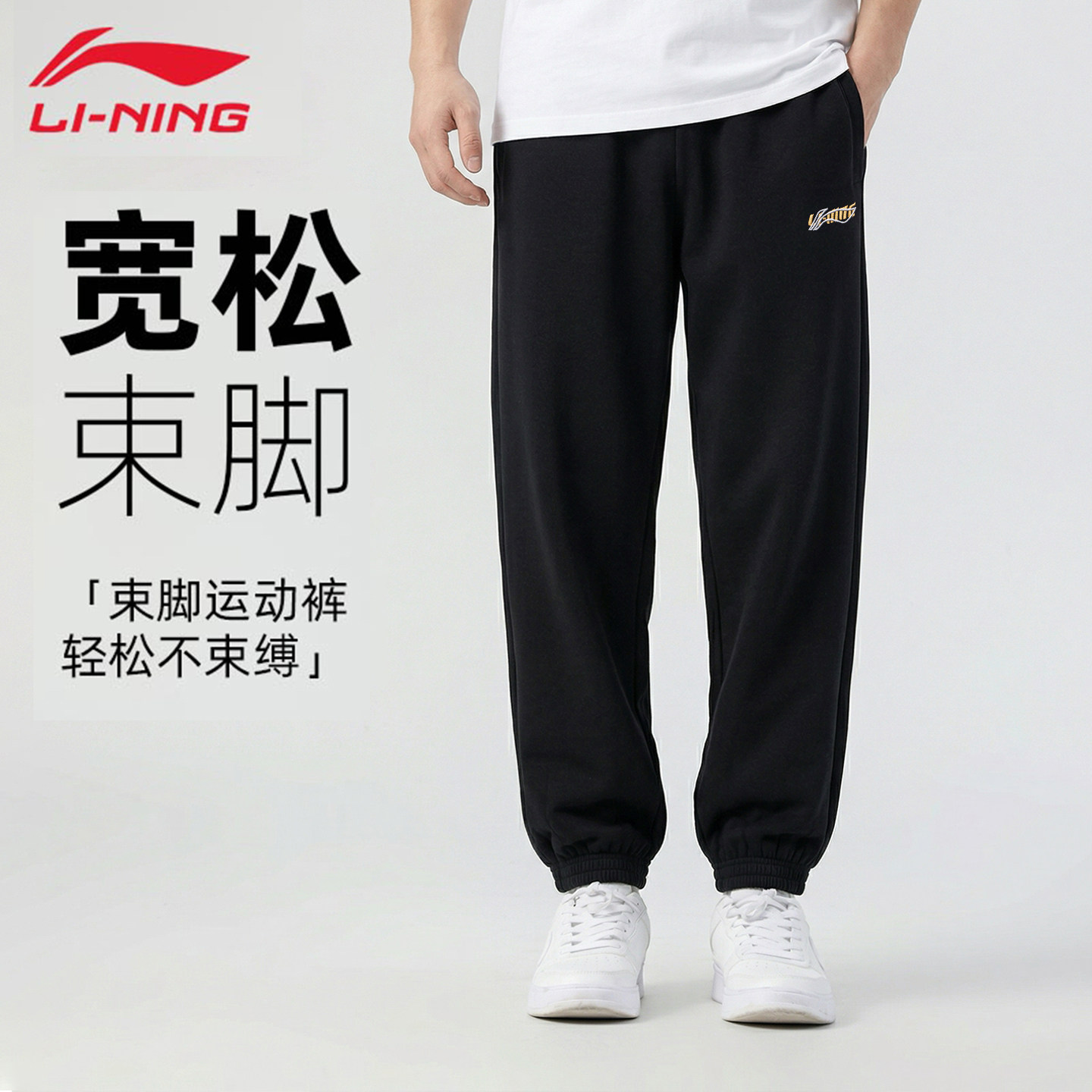 📚 李宁运动裤男春夏新款束脚裤子休闲针织卫裤健身篮球棉质透气长裤