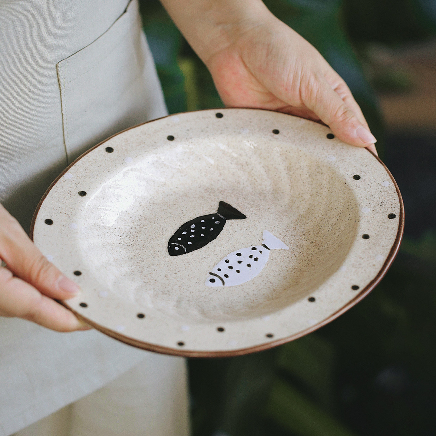 📚 泽滕家椭圆形盘子高颜值美式复古手绘水果沙拉意面牛排西餐吐司碟
