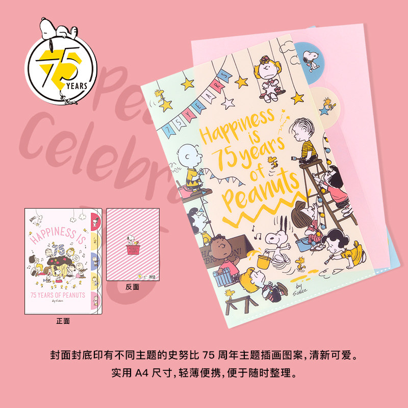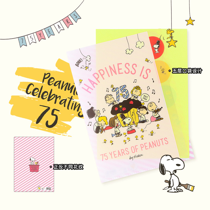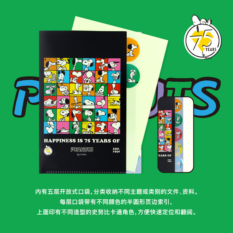 📚 sunstar太阳星史努比75周年纪念限定系列A4五层索引式文件夹主题插画印花文件资料试卷画稿收纳整理学生