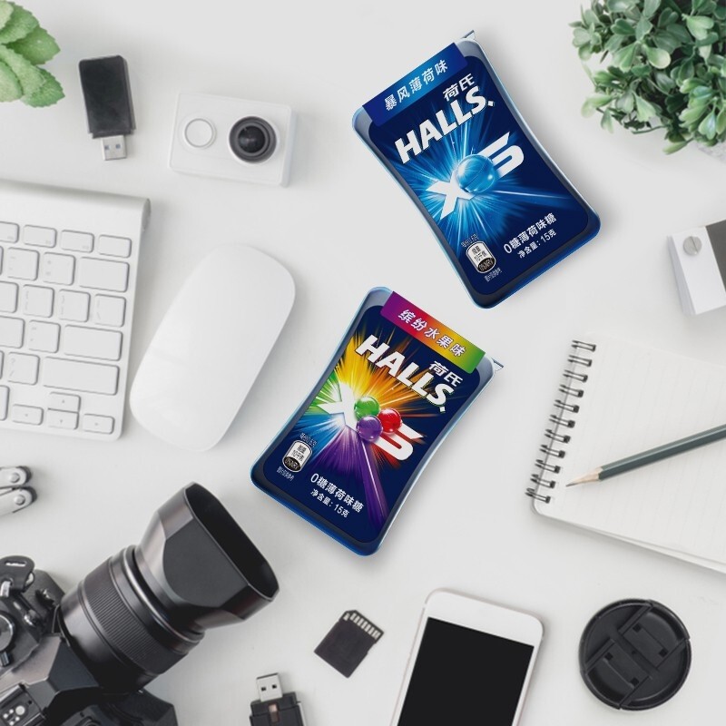 📚 HALLS荷氏0糖XS薄荷糖暴风薄荷味缤纷水果味15g午夜风暴小冰珠糖