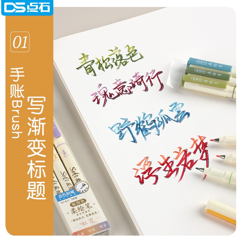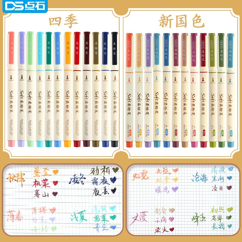 📚 点石柔绘笔全套827自带彩色勾线笔美术专用软bursh软头新国色秀丽笔笔锋画画笔黑色勾画笔粗头画笔手账笔石制