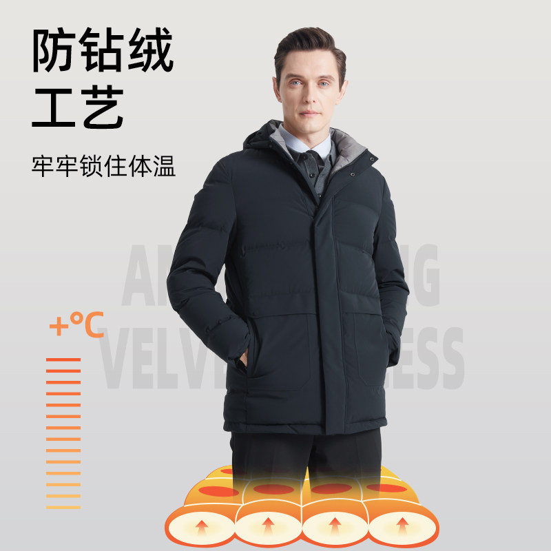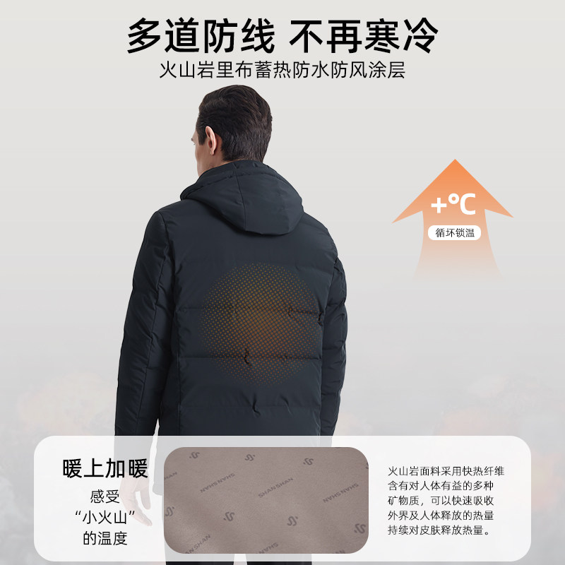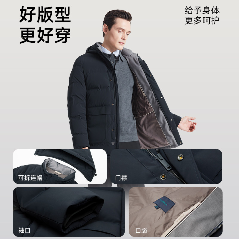 📚 杉杉中长款羽绒服男商务鹅绒服冬季2025新款加厚外套男连帽防寒服