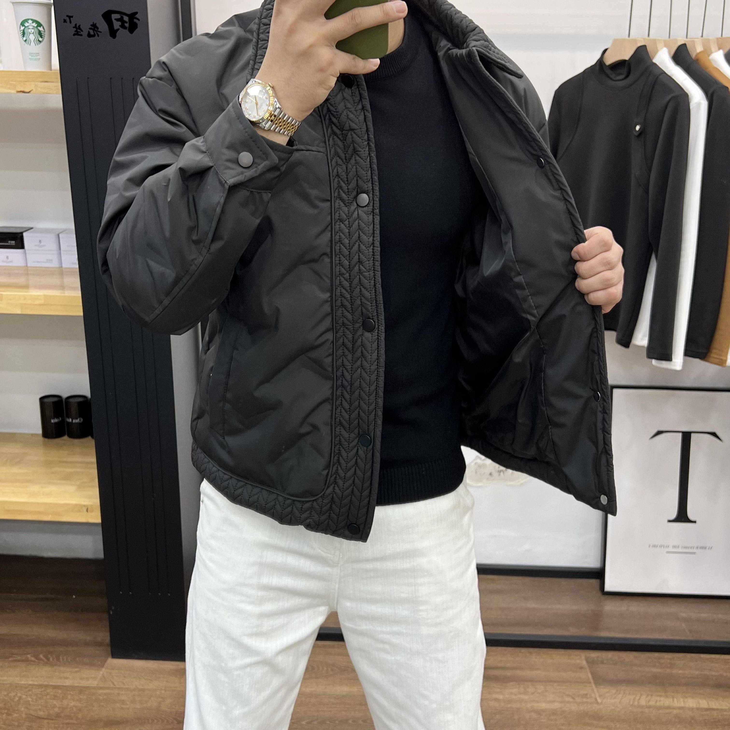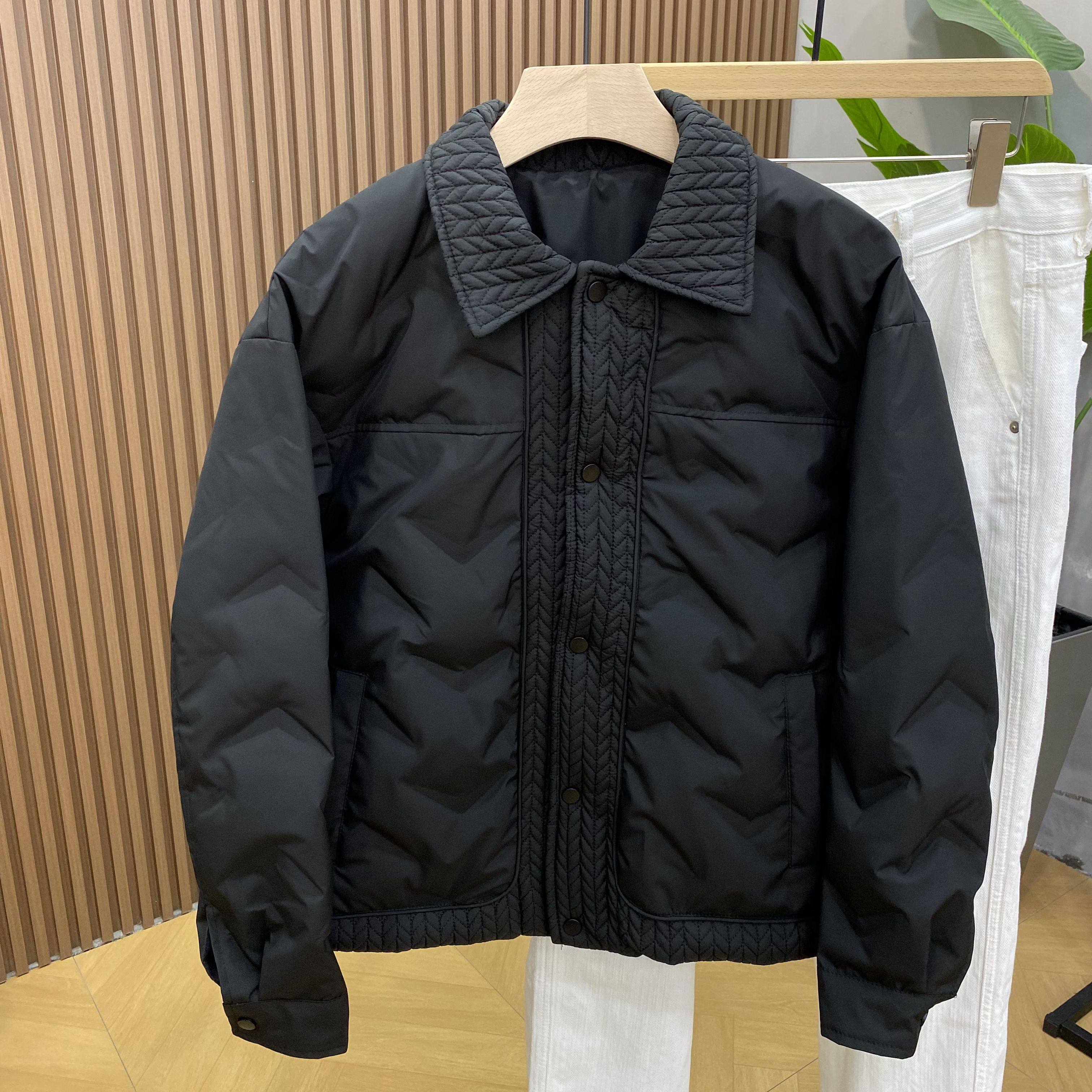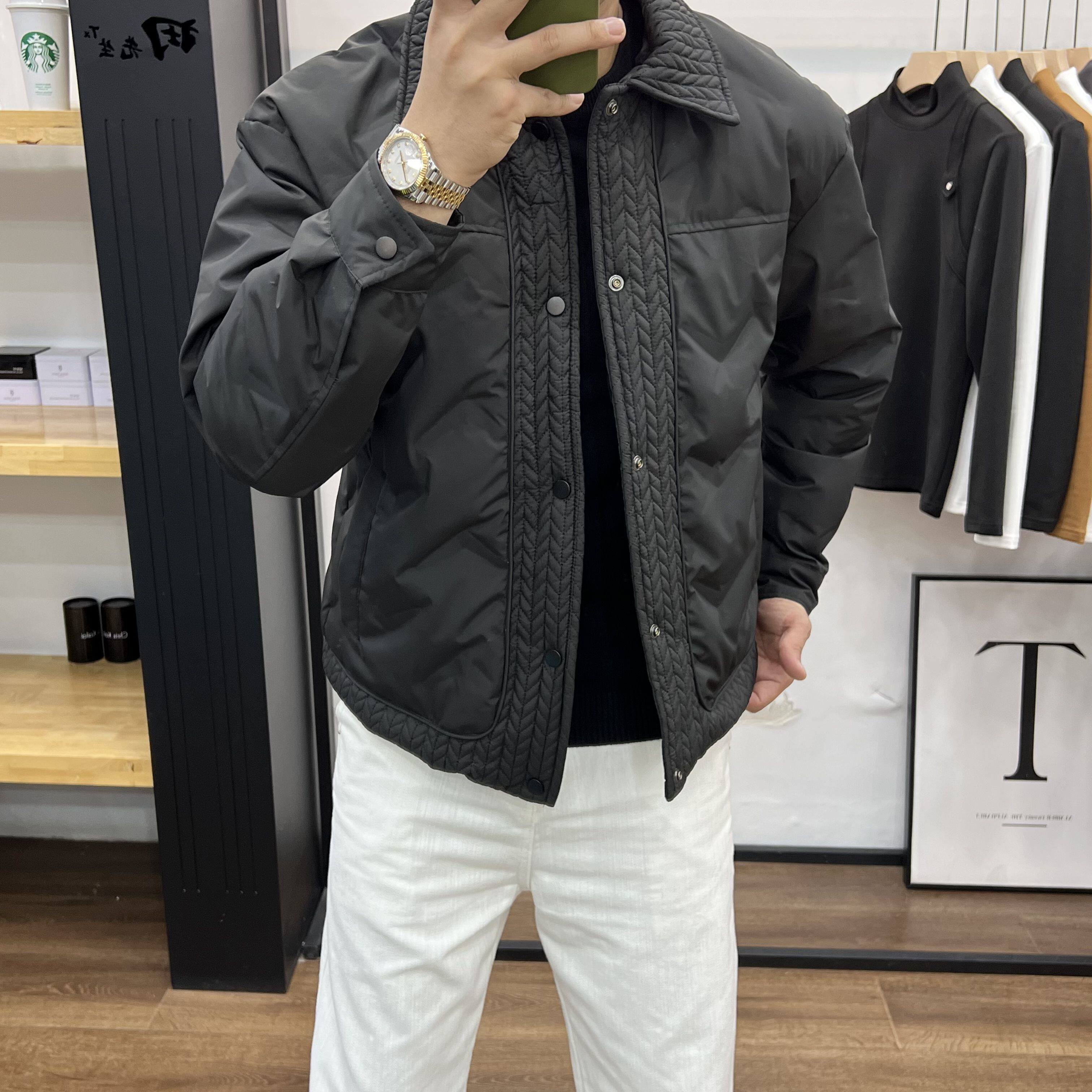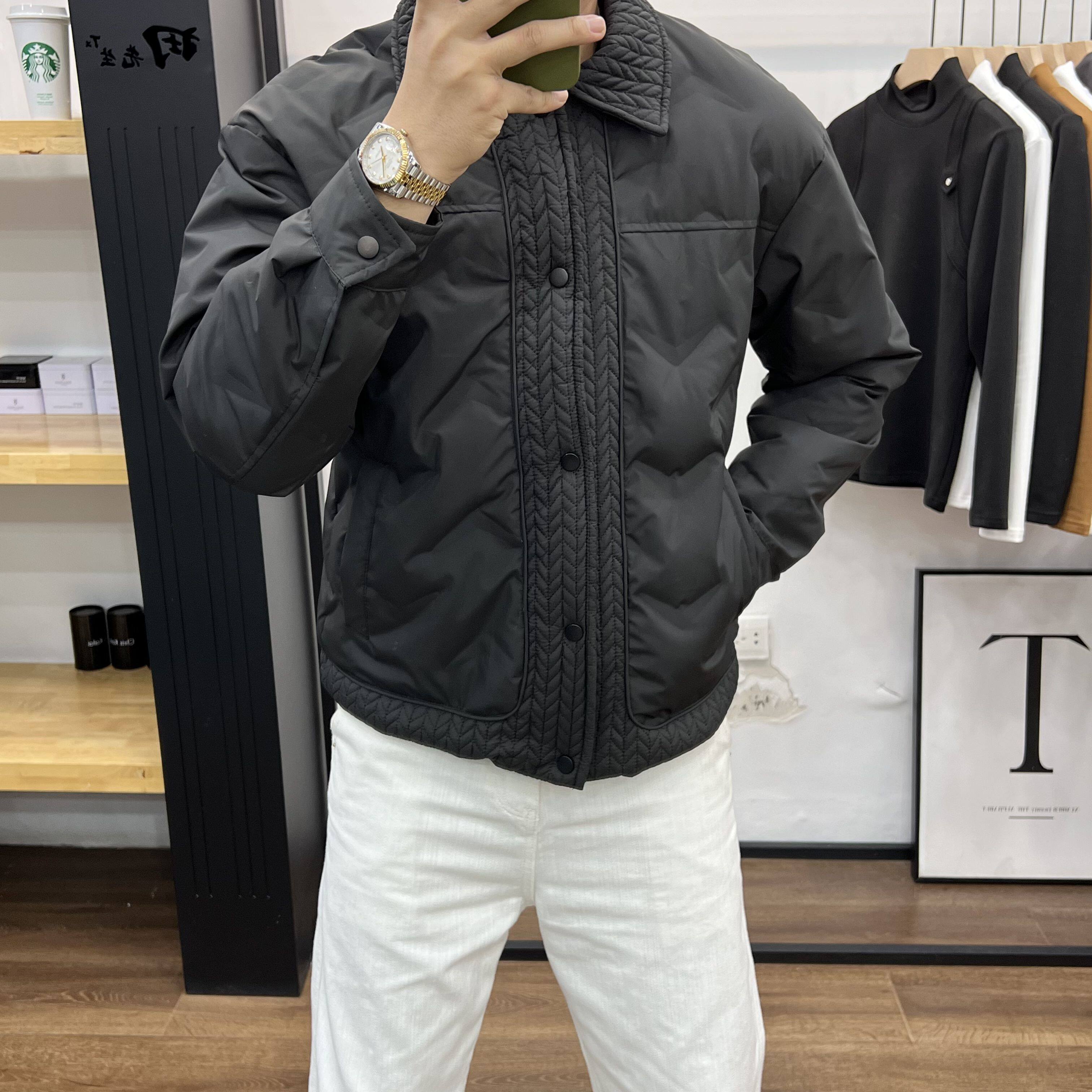 📚 秋冬新款麦穗拼接羽绒服时尚翻领灰鸭绒简约百搭男士防风保暖外套