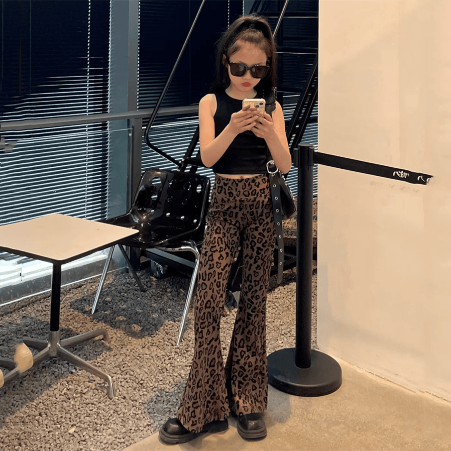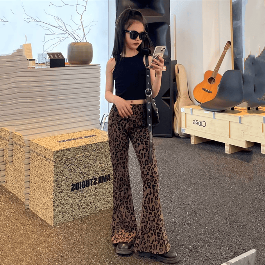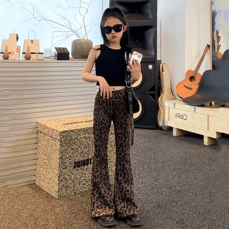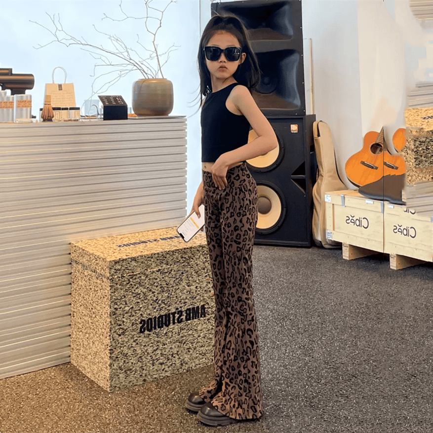📚 女童显瘦显腿长休闲裤子瑜伽裤中大童豹纹喇叭裤儿童洋气时髦长裤
