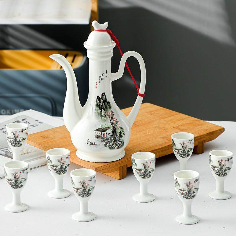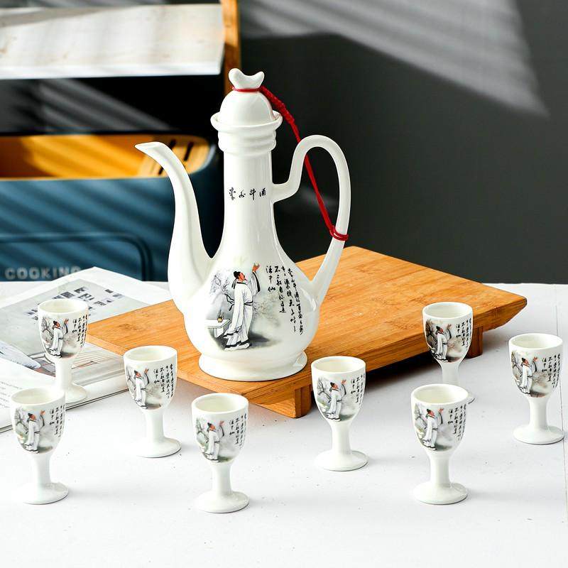 📚 陶瓷酒具套装双唇酒壶高脚杯仿古中式分酒器酒具礼品小酒壶一口杯