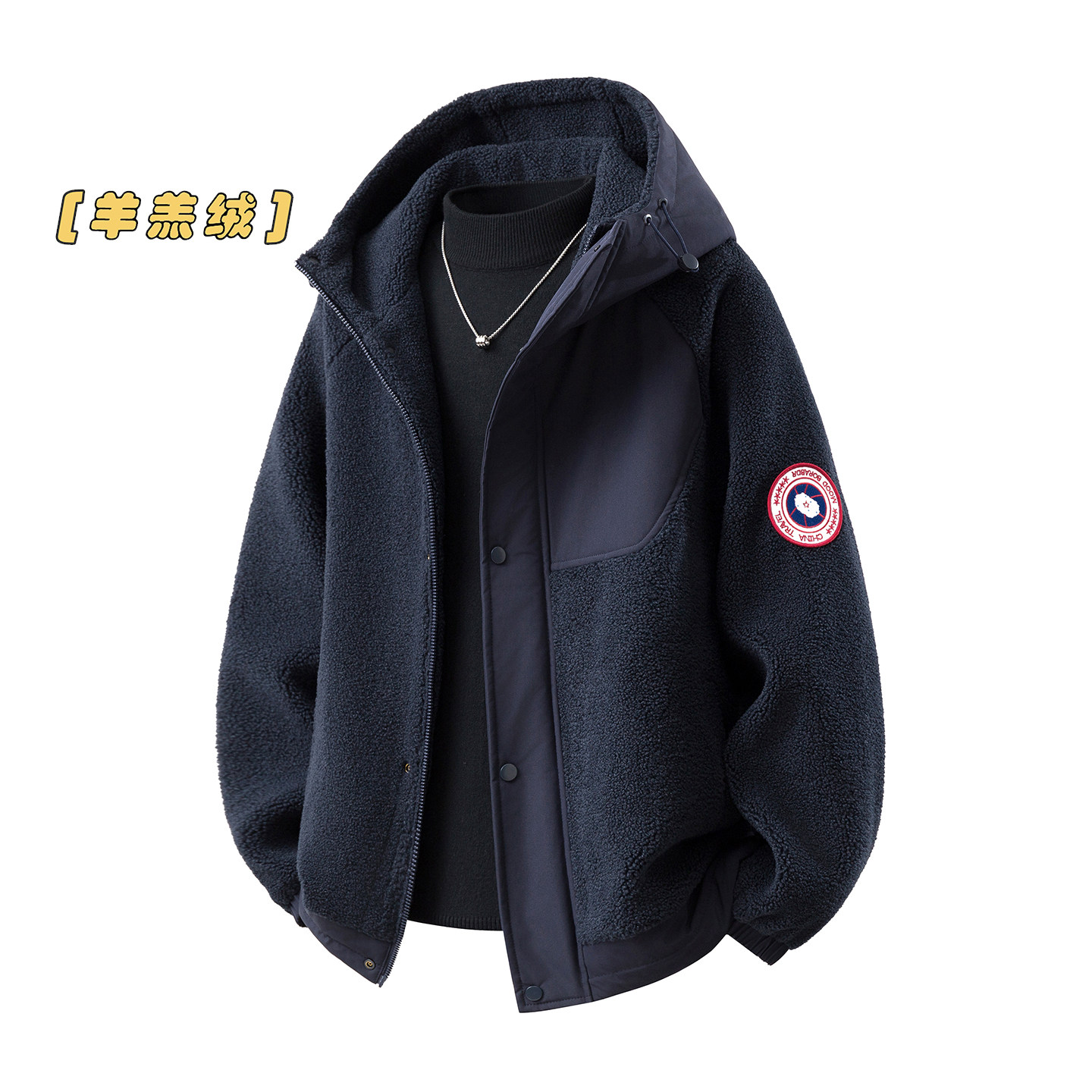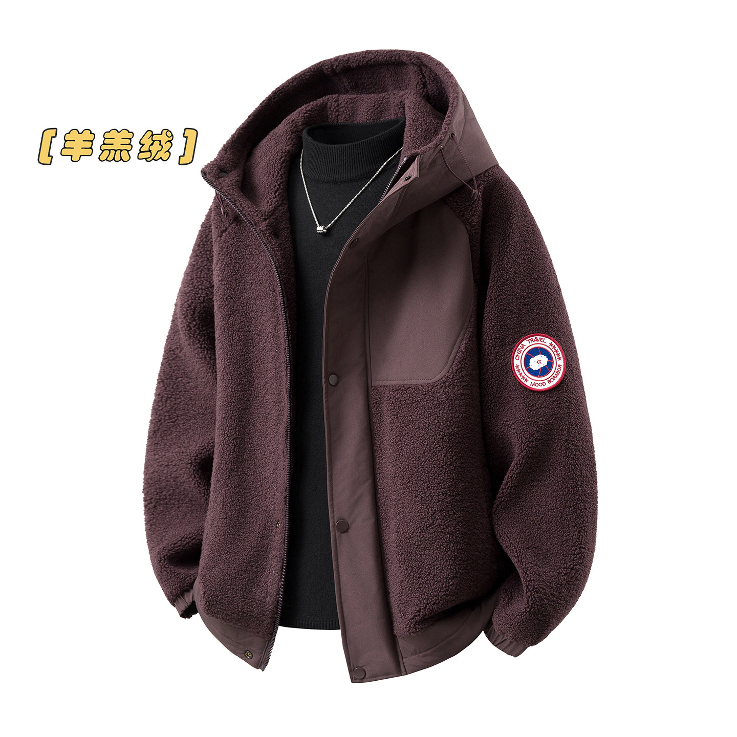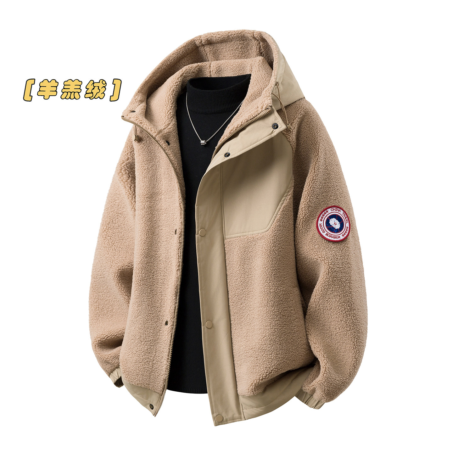 📚 拉夏贝尔重磅羊羔毛夹棉外套男士冬季新款摇粒绒保暖连帽棉服外套