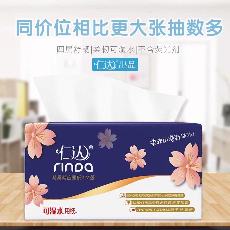 📚 汕头发货426张/包仁达擦手纸面巾纸餐巾纸餐饮家用商用