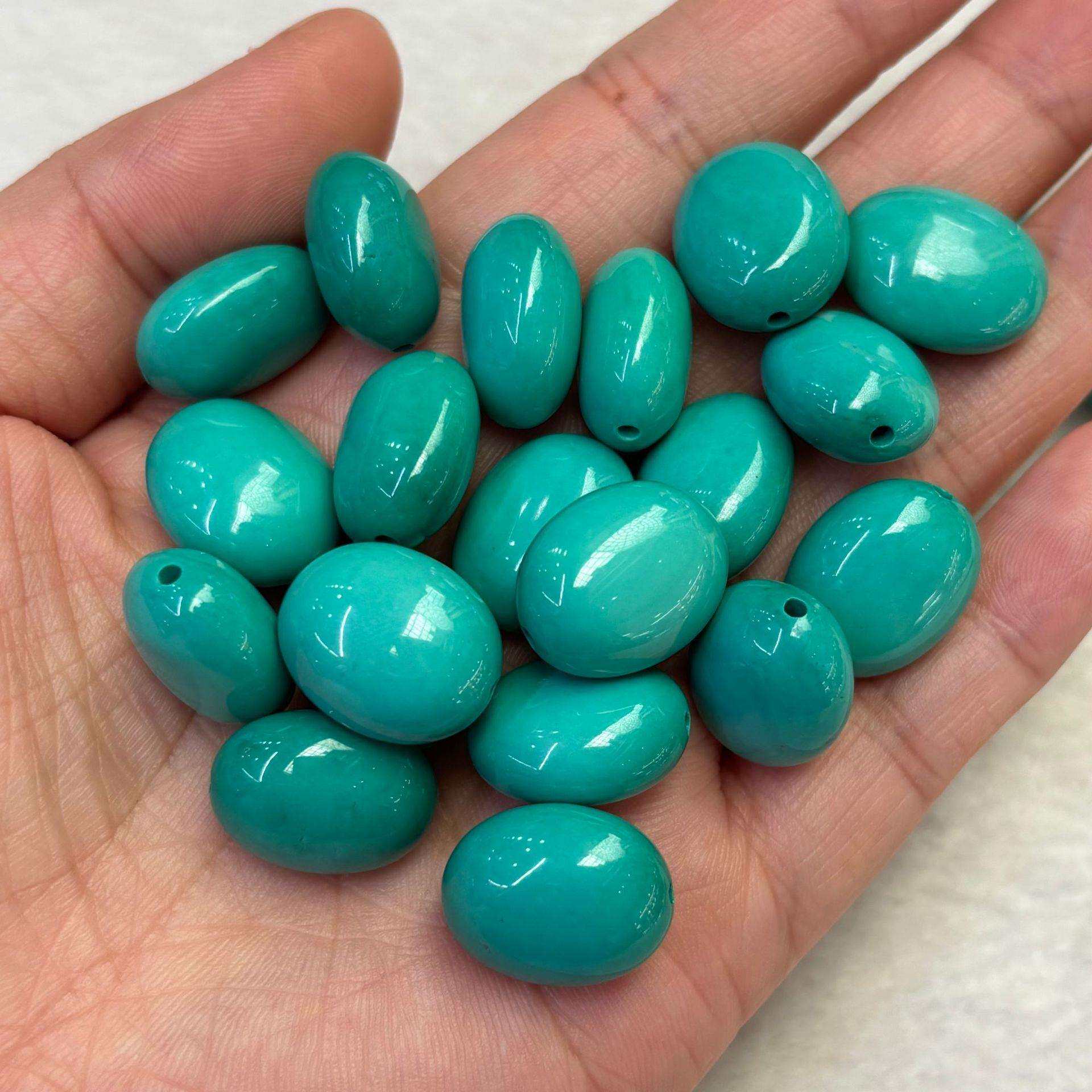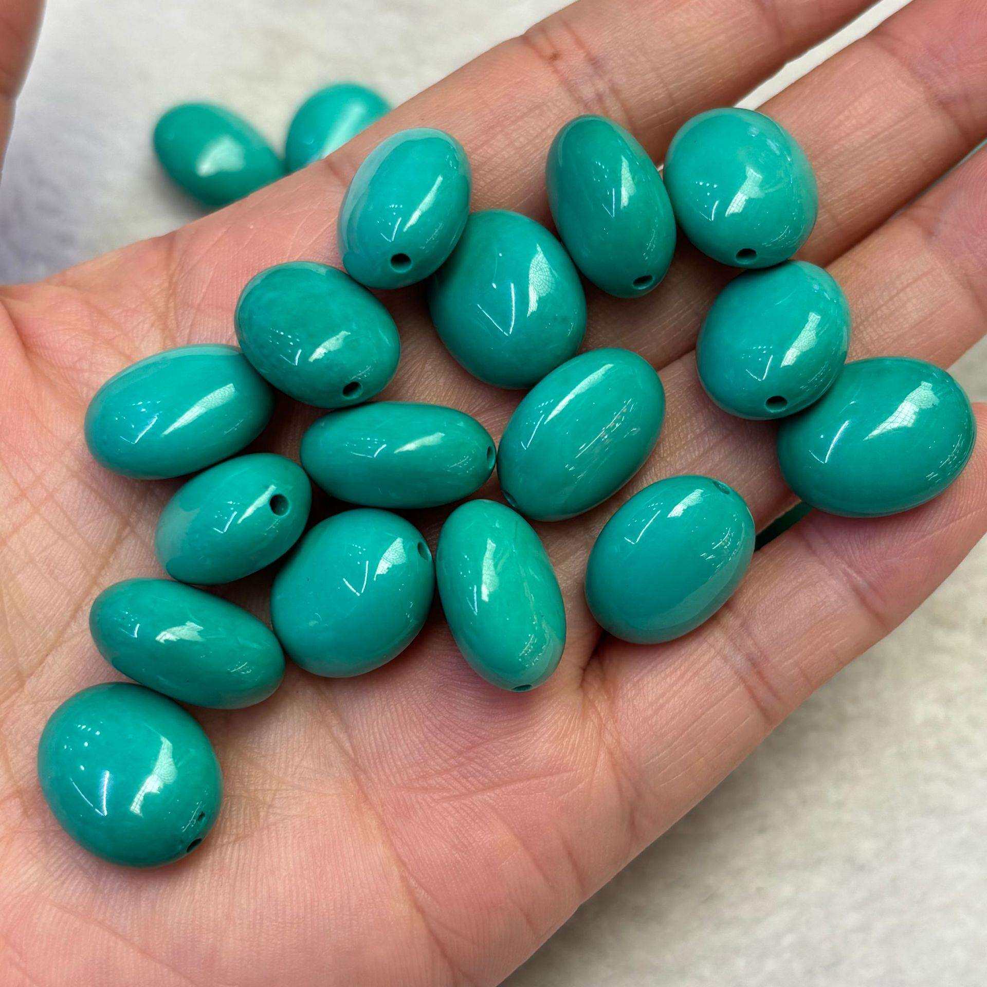 📚 天然菱镁矿绿松石散珠椭圆直孔蛋形珠子藏式文玩配饰腰珠隔珠顶珠