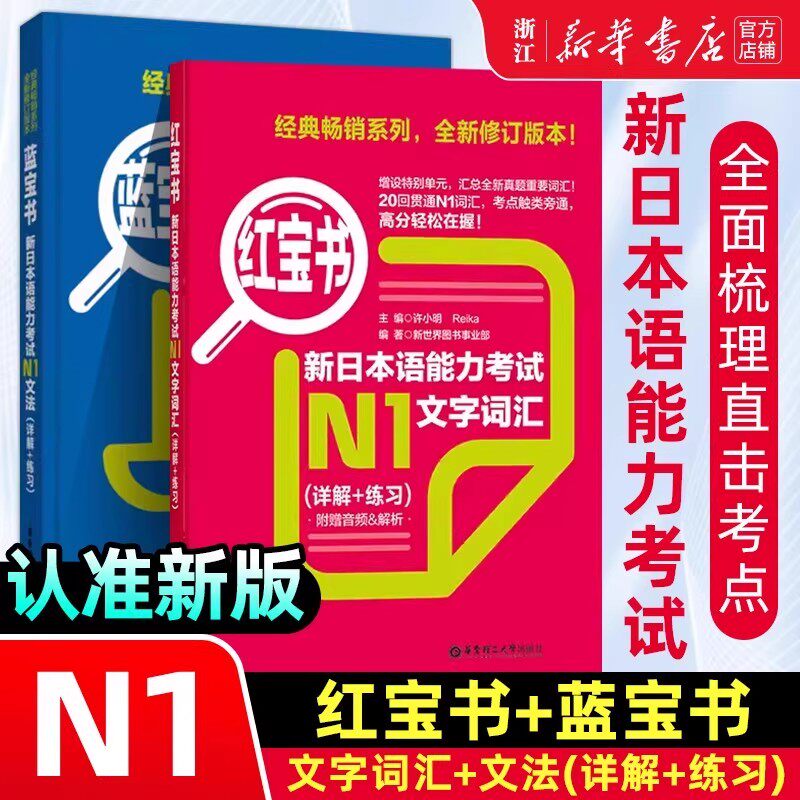 📚 团购优惠赠字帖日语N2红蓝宝书NI-N5文字词汇文法N4N3新日本语能力考试橙绿自学教材真题单词语法红蓝宝书1千题1000题日语红蓝宝书