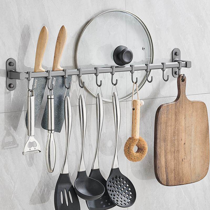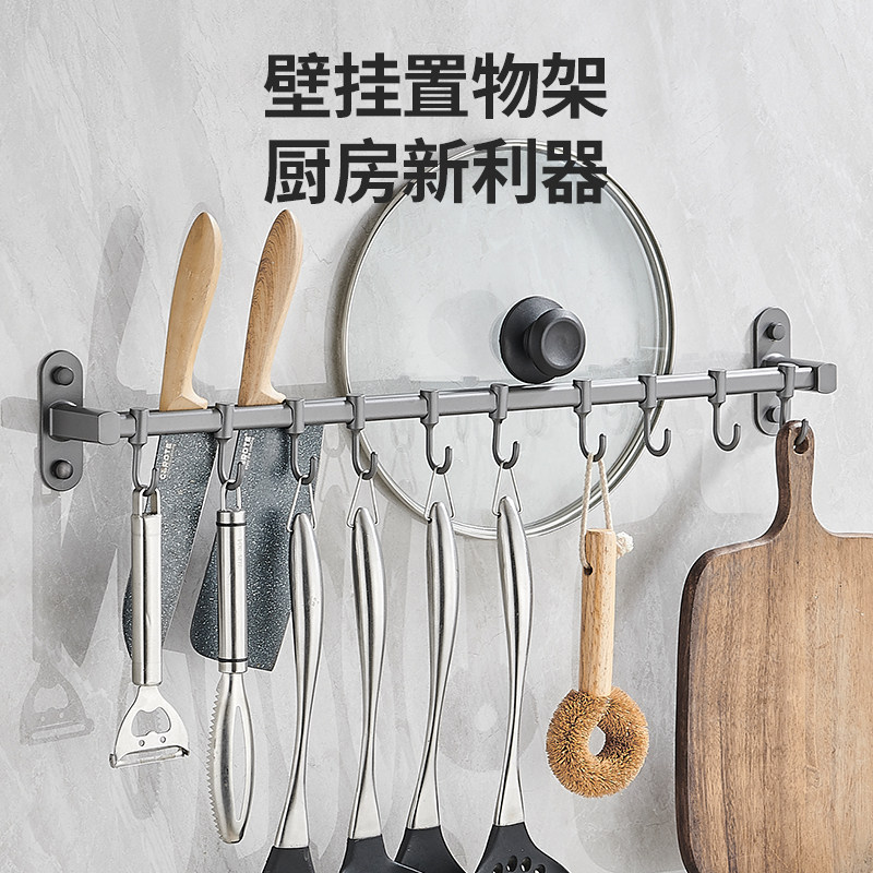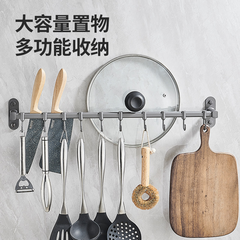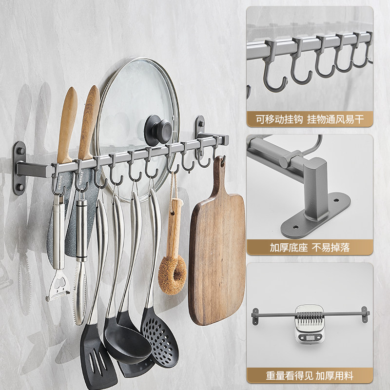 📚 厨房挂钩架免打孔挂杆锅盖架铲勺子刀架壁挂式毛巾架置物架太空铝