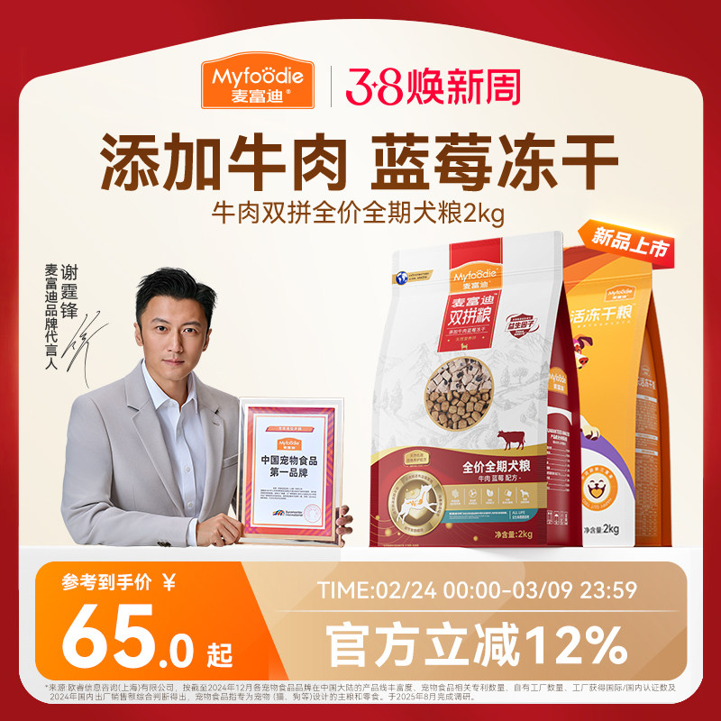 📚 麦富迪狗粮牛肉蓝莓冻干双拼粮泰迪金毛成犬幼犬粮小型犬通用狗粮