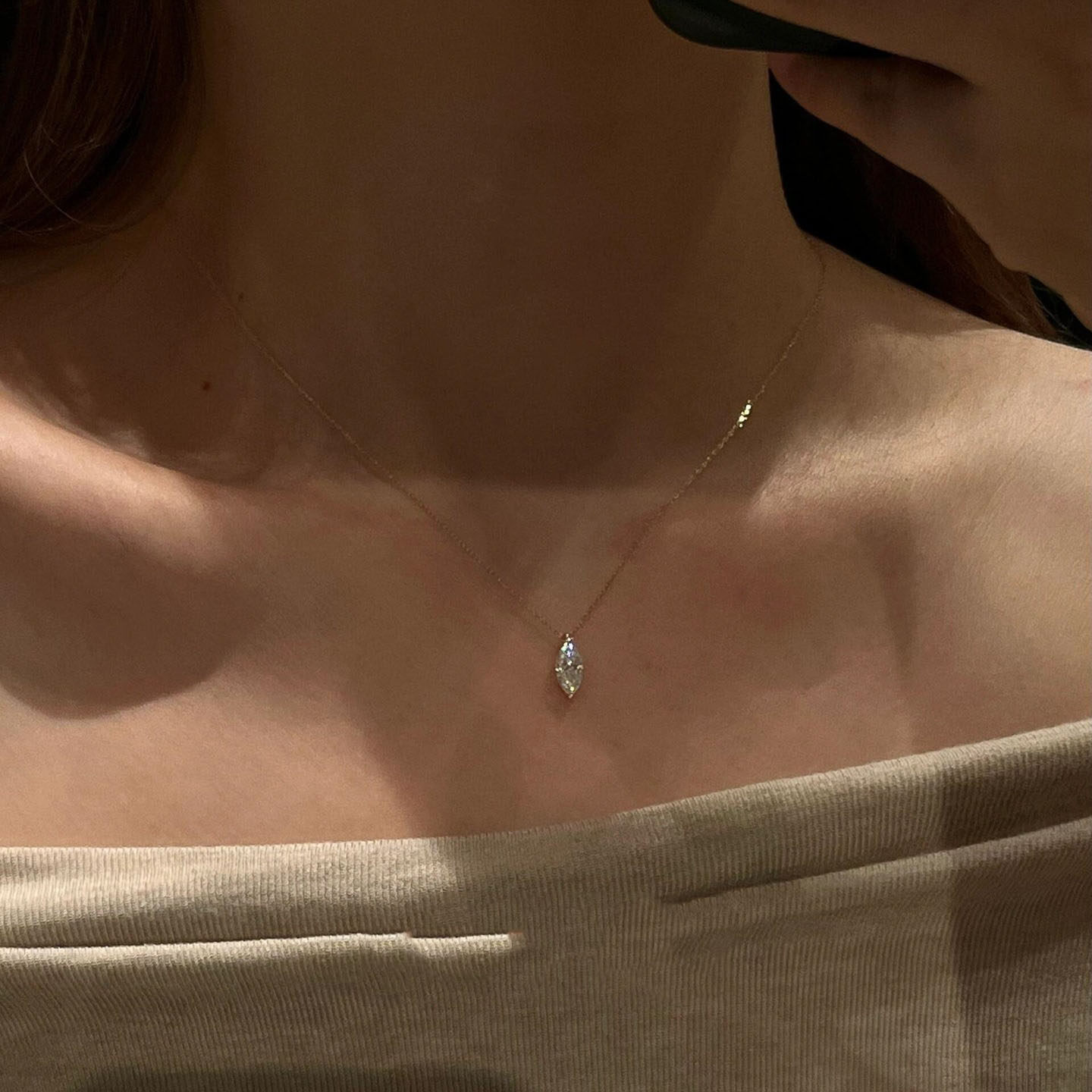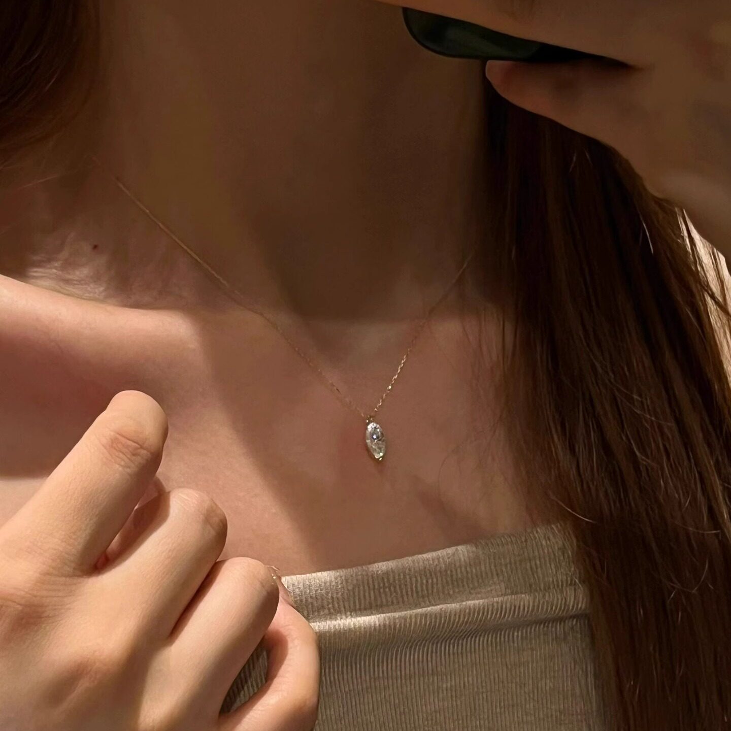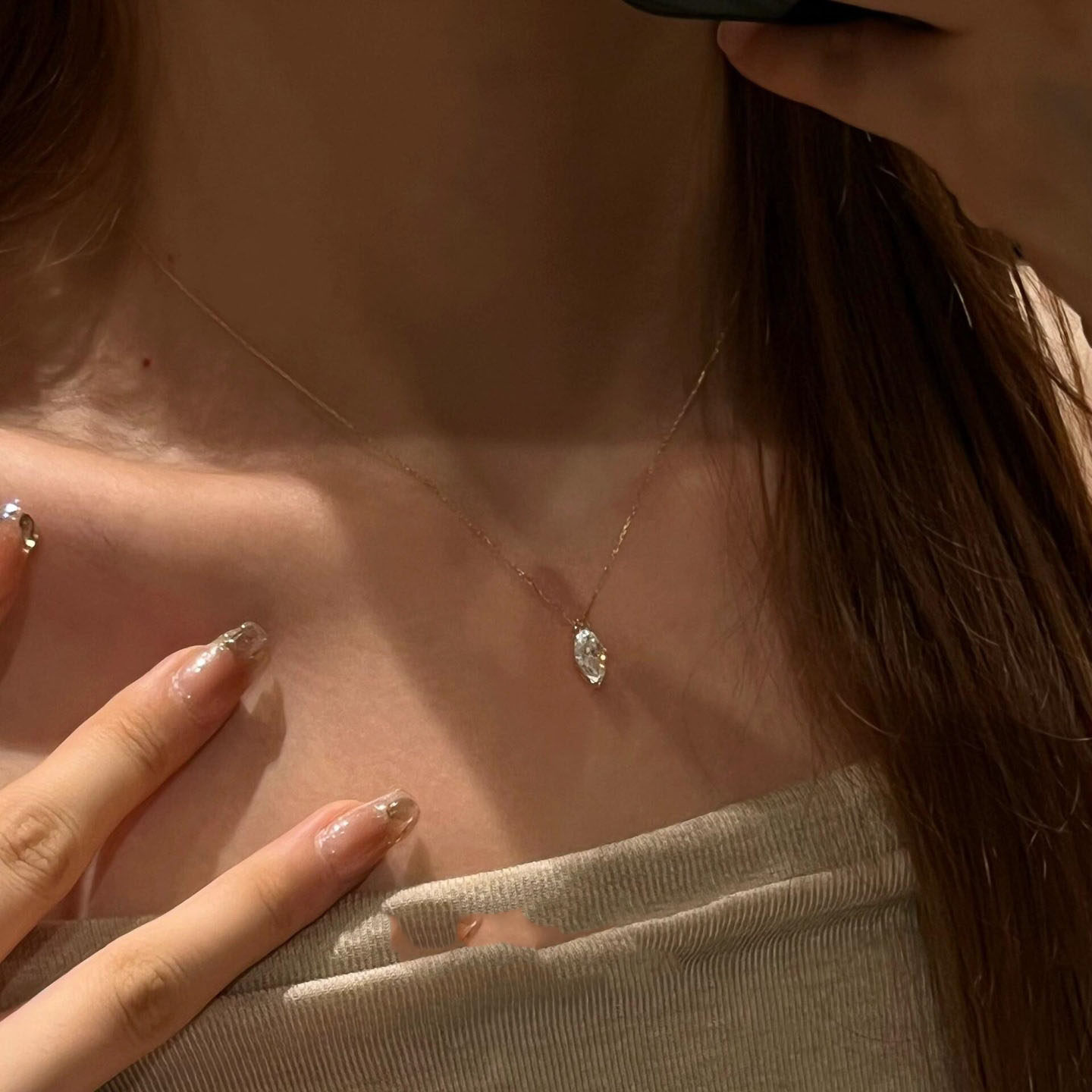 📚 极简主义~马眼闪钻吊坠s925纯银香槟金极细精致项链配饰女锁骨链