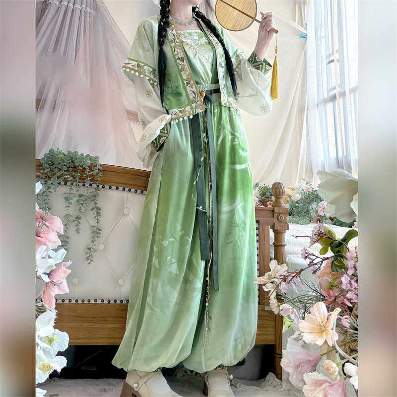 📚 墨晨烟雨【新枝绿影】原创汉元素唐褙子灯笼裤宋制褶裙国风日常款
