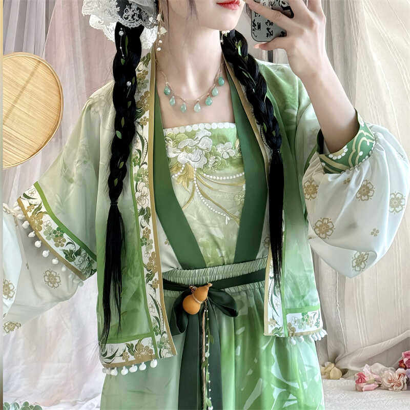 48¥ HU287 iVgWUEo2Fe1¥ https://m.tb.cn/h.i3bgnAE 墨晨烟雨【新枝绿影】原创汉元素唐褙子灯笼裤宋制褶裙国风日常款 --------------------- 【原售价】128元 【现售价】128元。