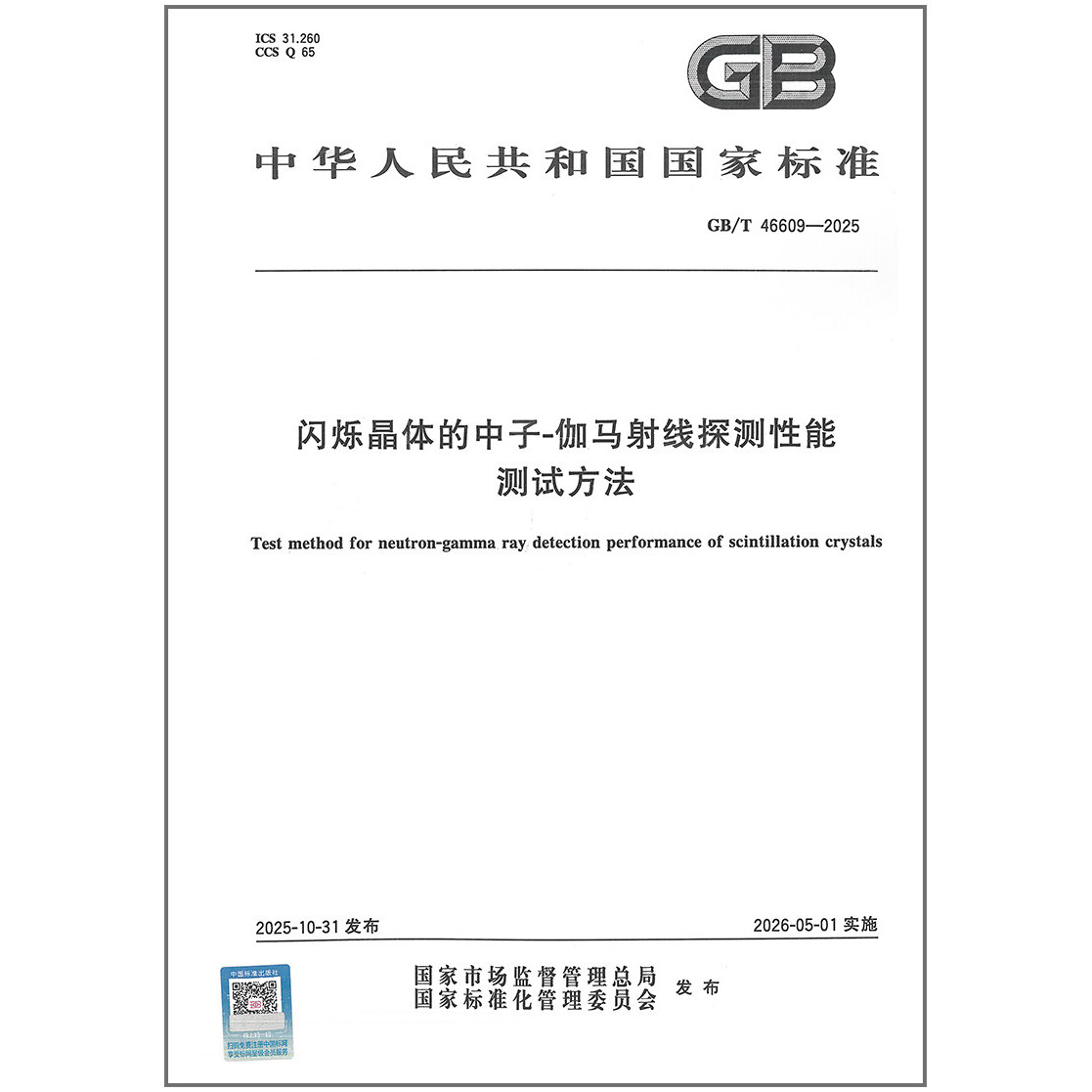 📚 GB/T 46609-2025 闪烁晶体的中子-伽马射线探测性能测试方法