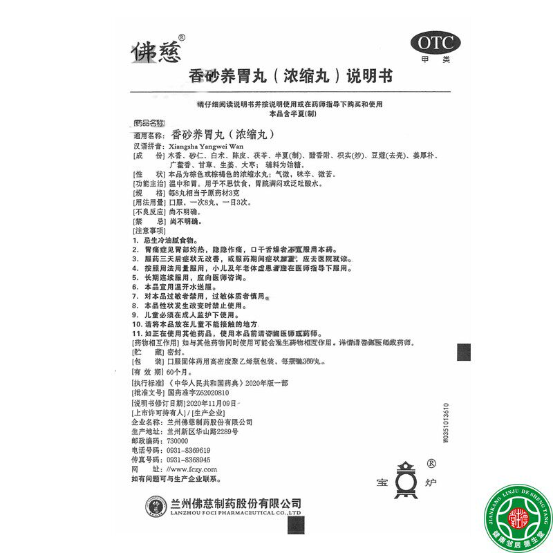 📚 包邮】佛慈香砂养胃丸360丸*1瓶/盒不思饮食胃脘满闷泛吐酸水