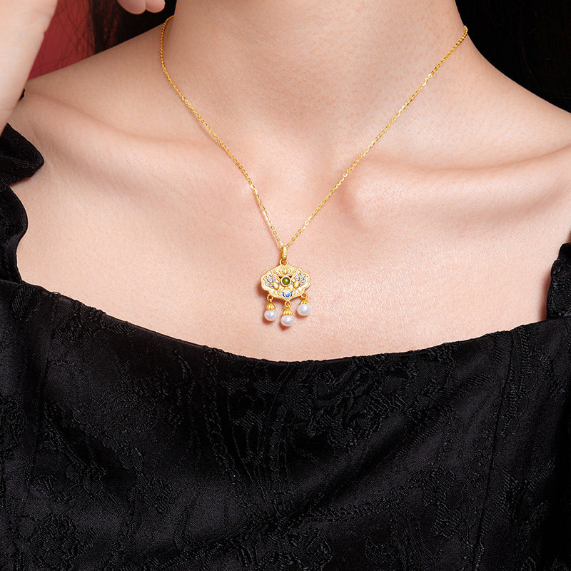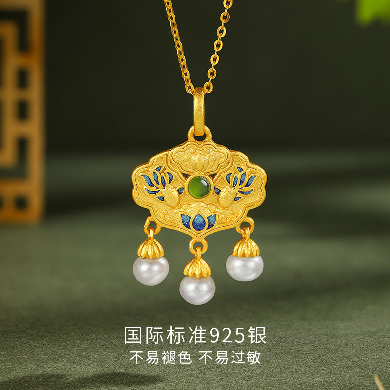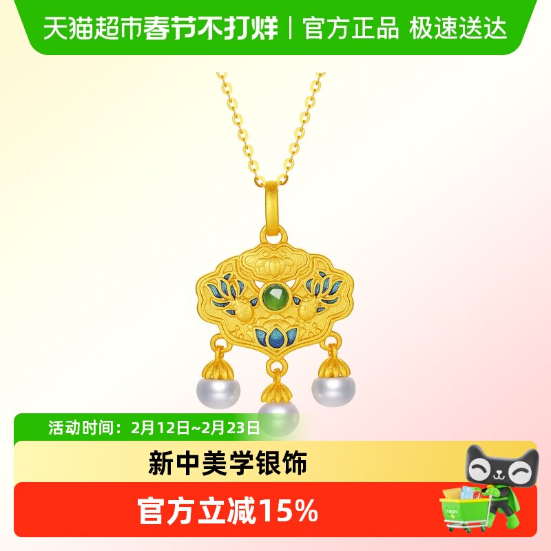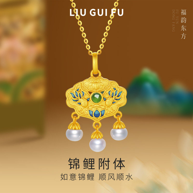 📚 六桂福珠宝S925银黄金色吊坠锦鲤附体项链银饰挂坠新年礼物送女友