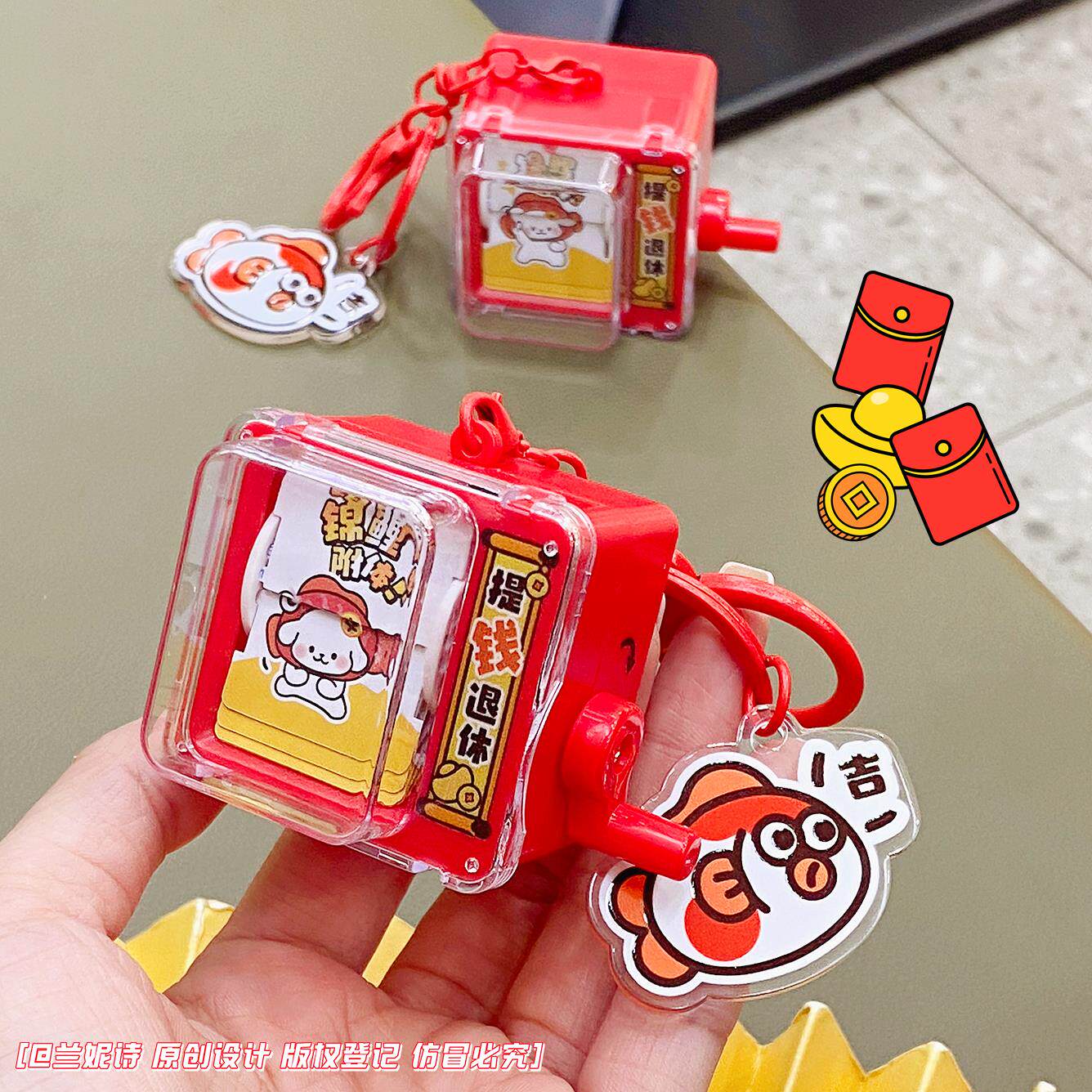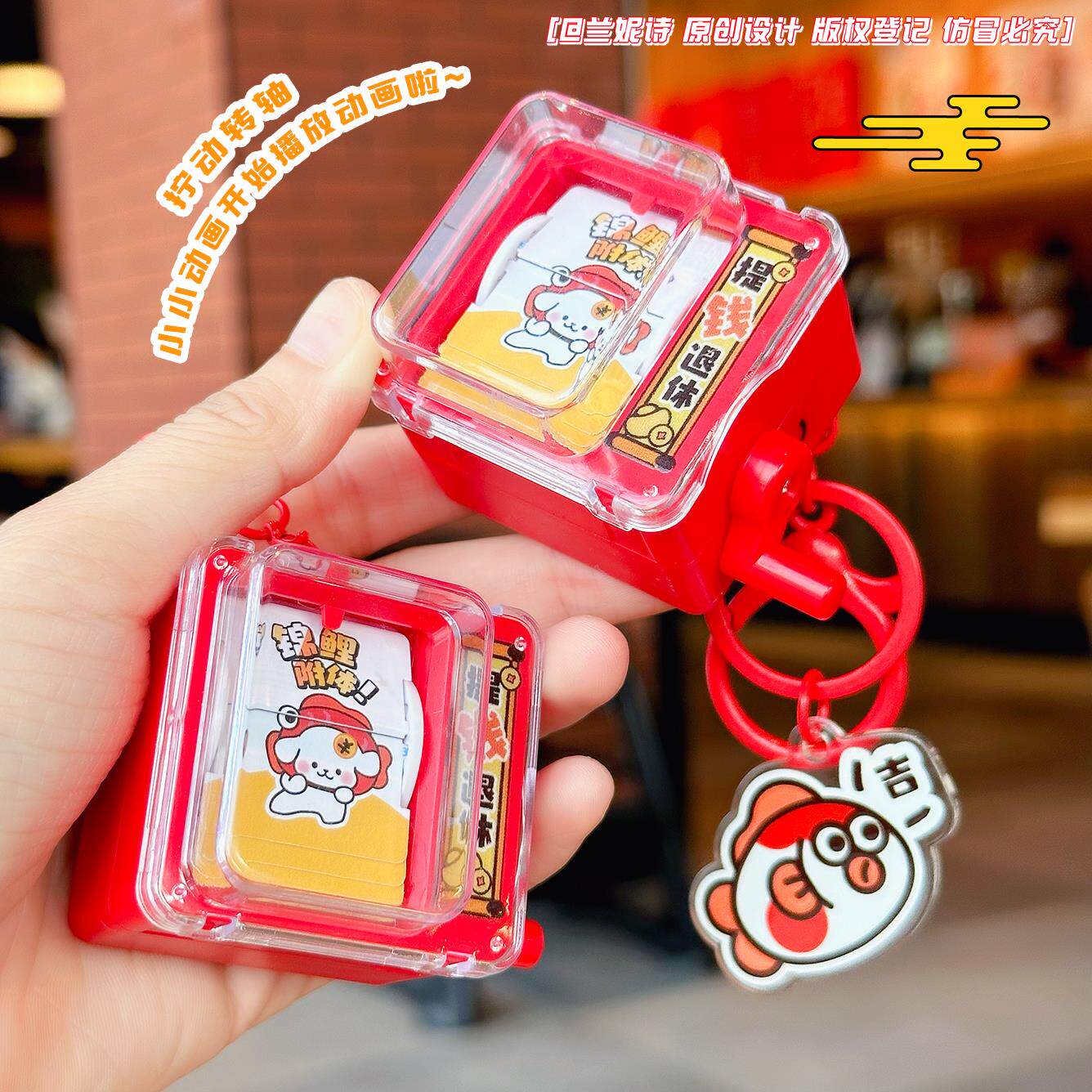 📚 锦鲤附体趣味翻翻动画机钥匙扣卡通解压小玩具儿童学生书包挂件
