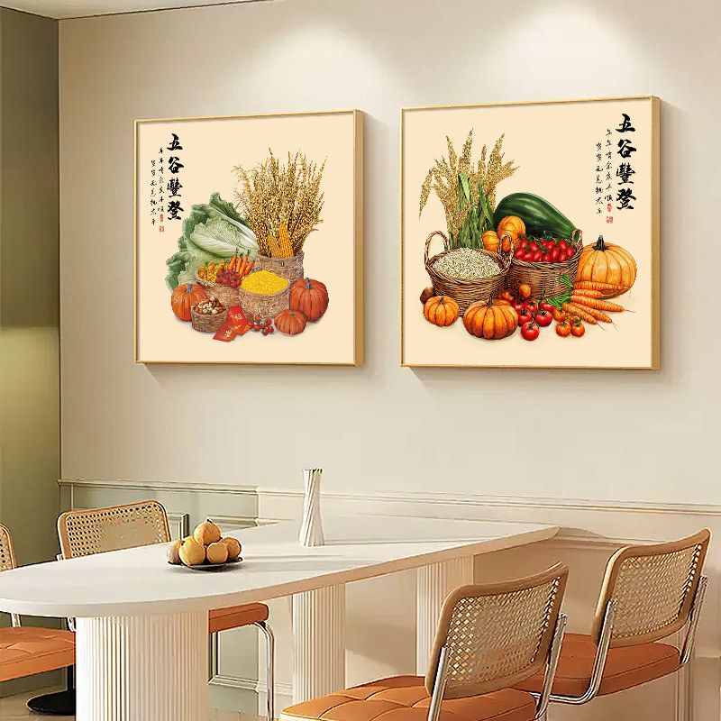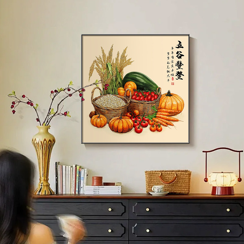 📚 五谷丰登入户玄关柜装饰画客厅餐厅走廊过道方形挂画饭厅背景壁画