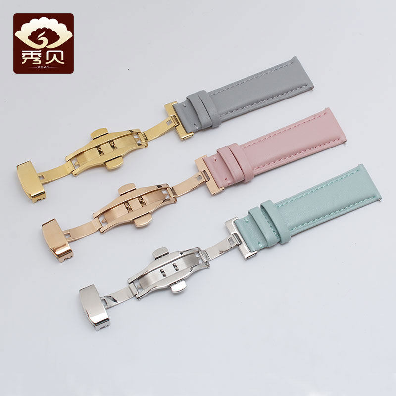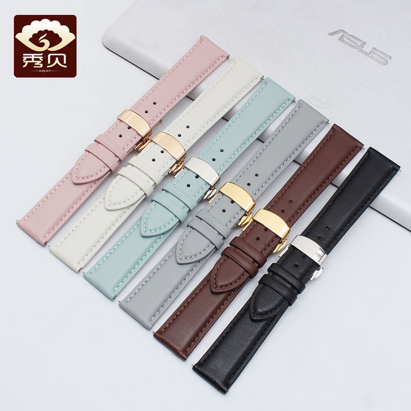📚 手表带女款真皮 代用天梭卡西欧dw表带女 白色红色皮表带女士表链