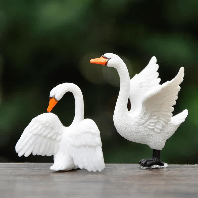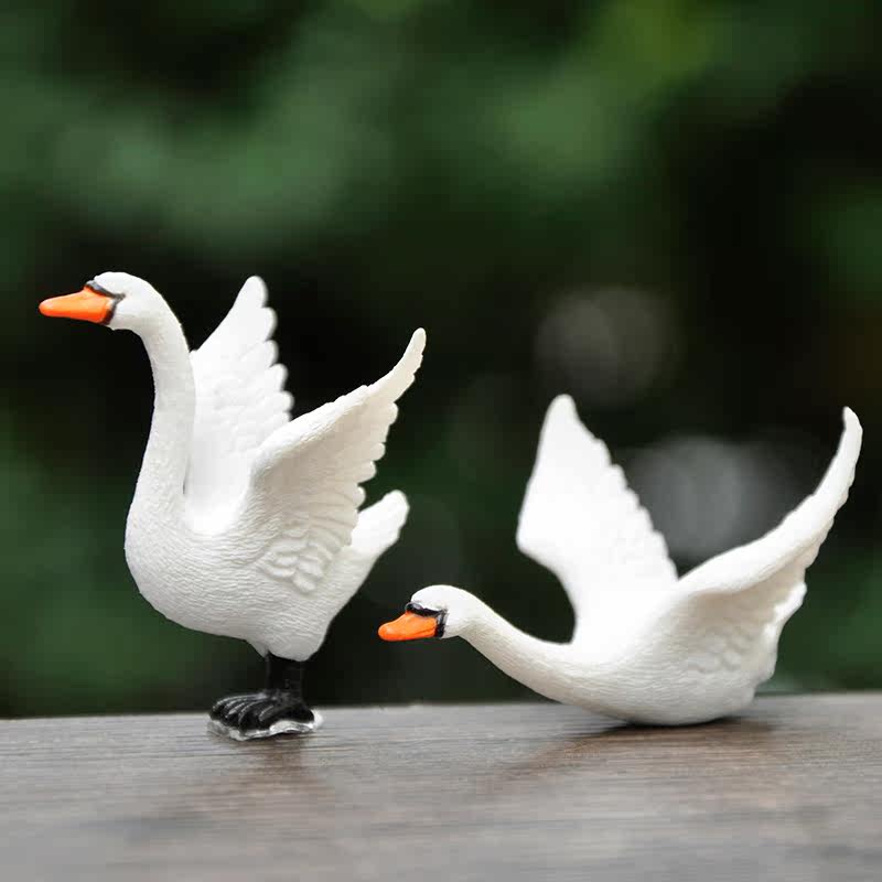 📚 新品仿真天鹅PVC动物公仔创意戏水白鹅微景观多肉造景装饰品摆件