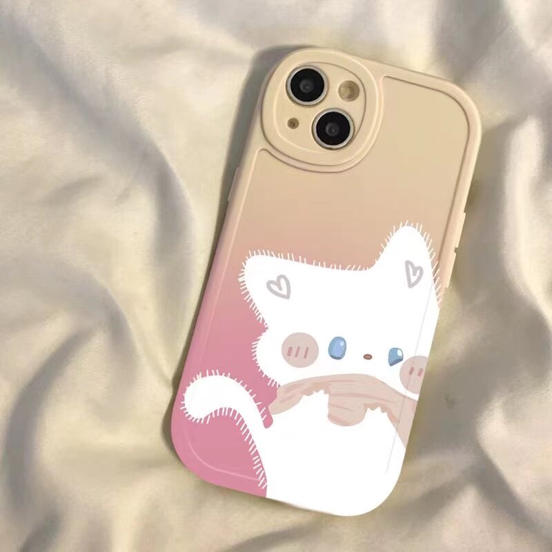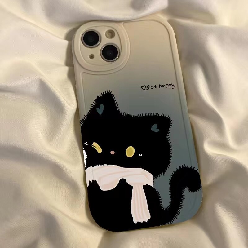 📚 甜心猫咪适用苹果13手机壳iPhone11/12/13mini/14/15pro个性潮可爱iphone8/14plus情侣新款xr/xs/xsmax保护套
