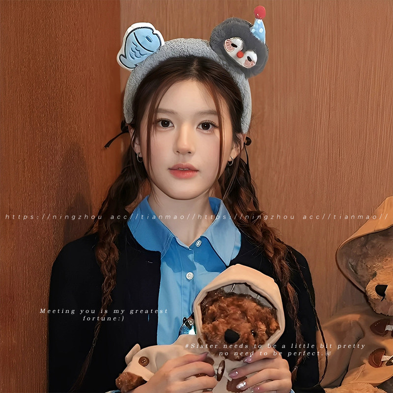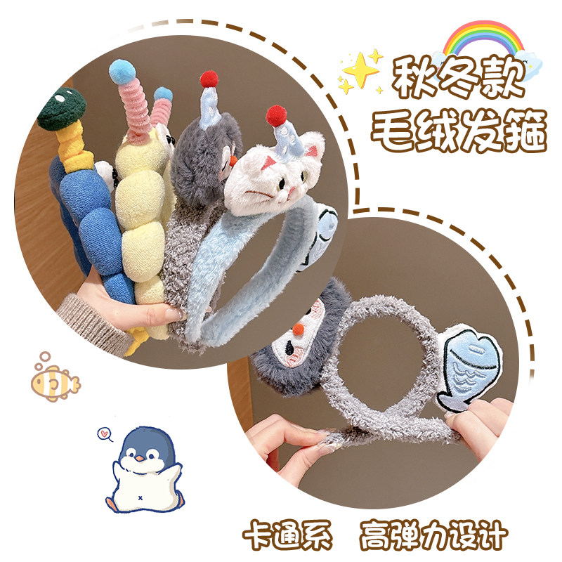 📚 可爱毛绒发箍女款2025新款洗脸专用头箍防滑不掉压发发卡秋冬发饰