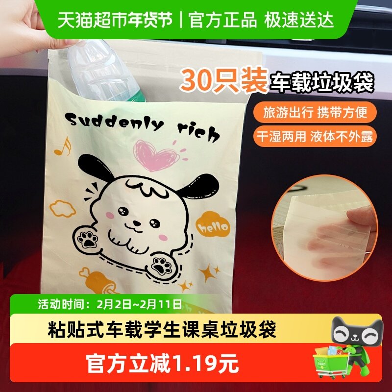 📚 妙然粘贴式车载垃圾袋收纳桶便捷式学生课桌宿舍办公卡通图案30只
