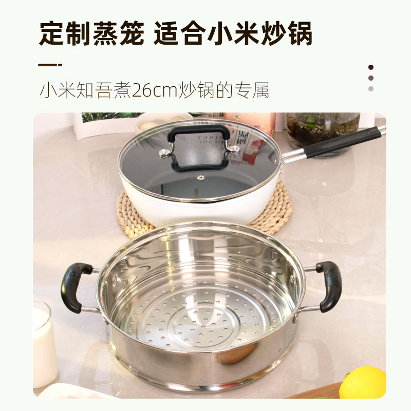 📚 蒸笼小米米家不粘平底炒锅专用不锈钢蒸笼米家知吾煮炒锅蒸格26cm