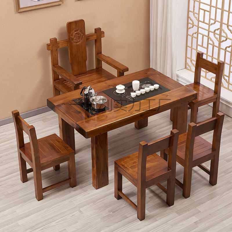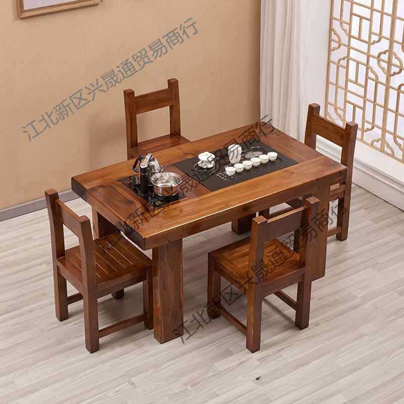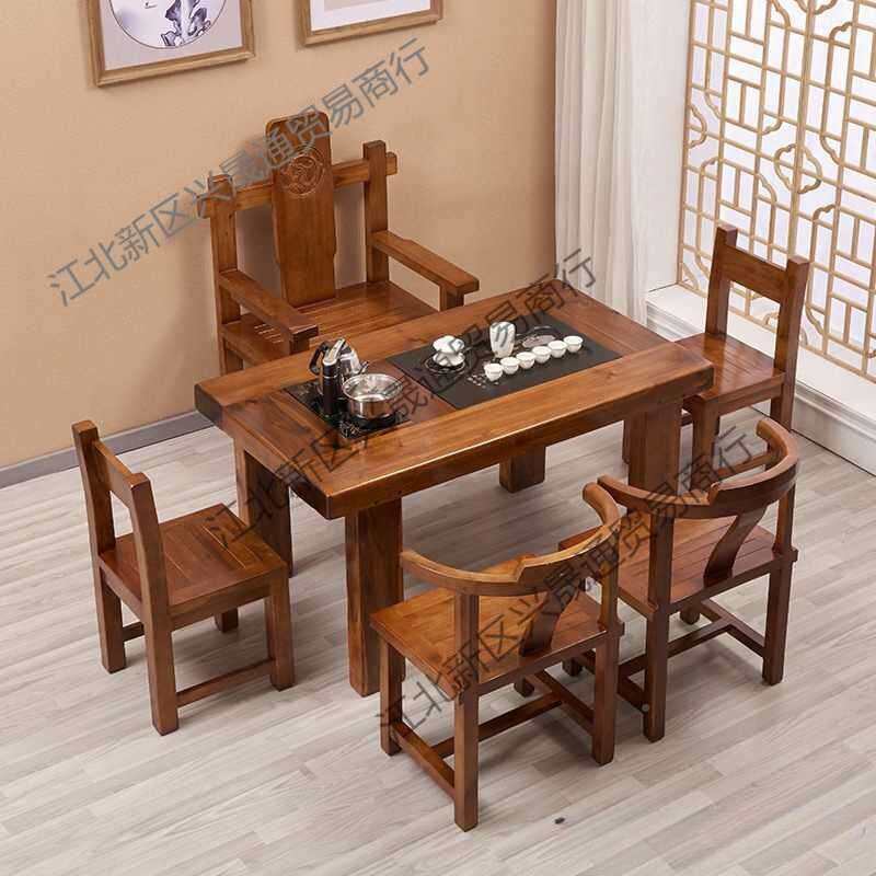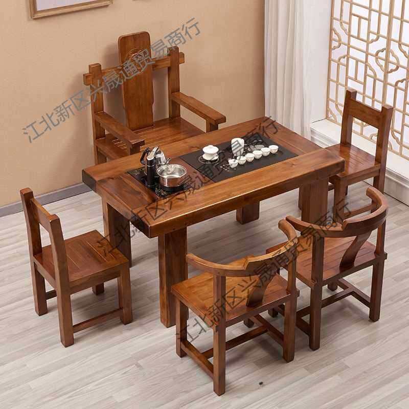 📚 老船木茶桌椅厅组中KDA实合木办公式室功夫泡茶台小型阳台茶几客