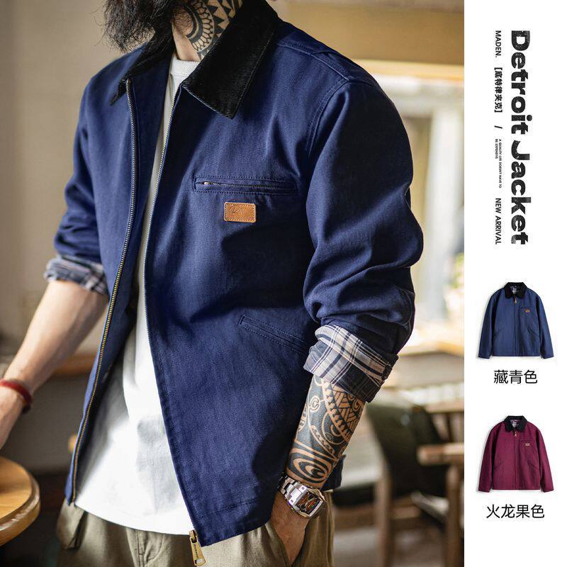 📚 马登工装美式底特律藏青色夹克猎装J001美式巴恩风翻领外套男秋