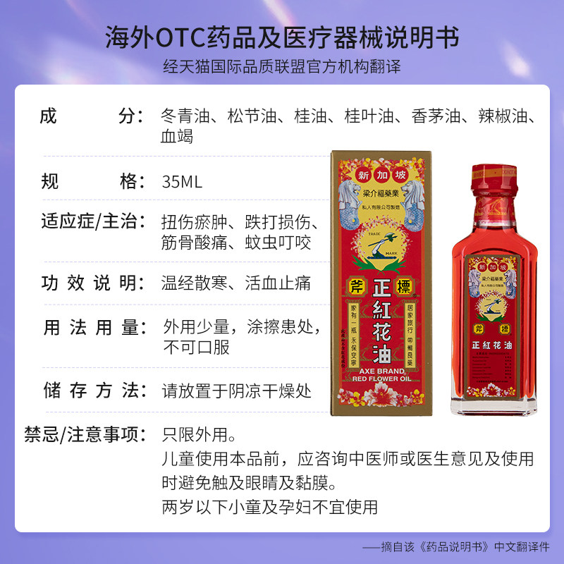 📚 新加坡港版斧标正红花油35ml 筋骨酸痛 铁打损伤扭伤瘀肿进口正品