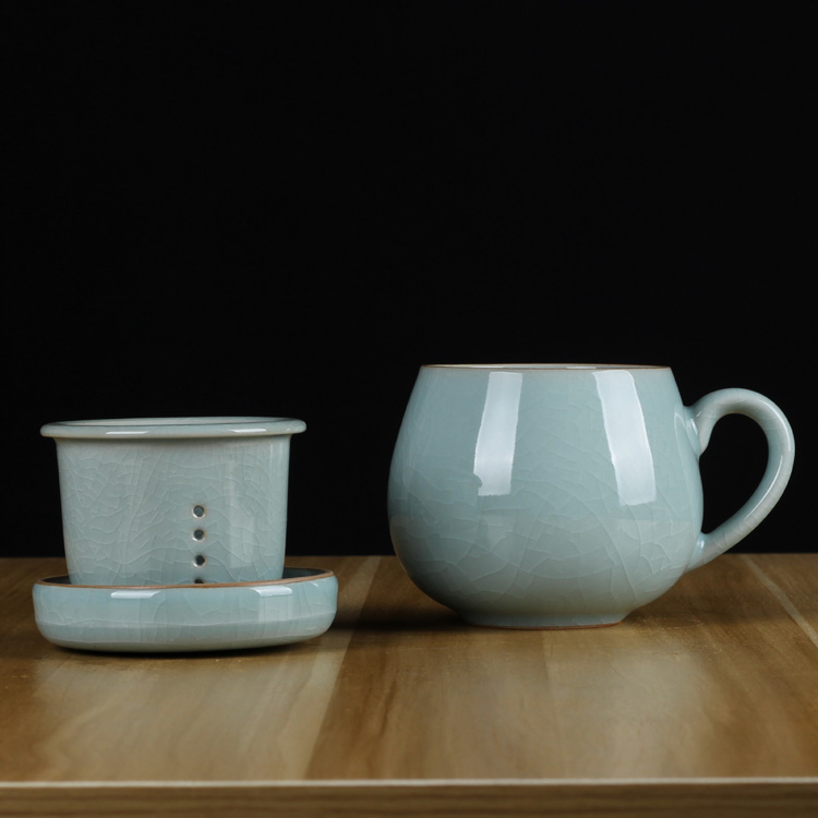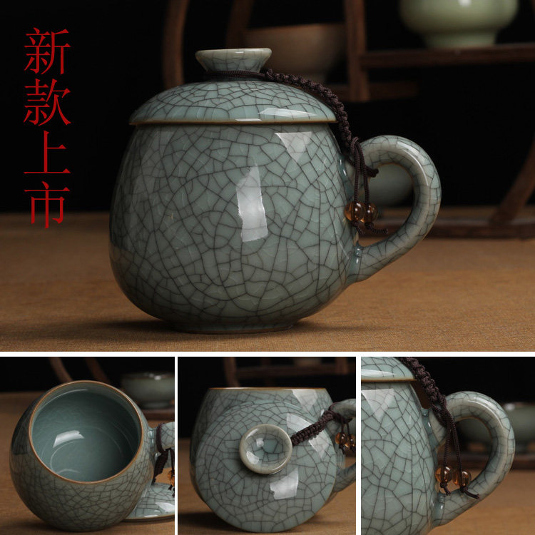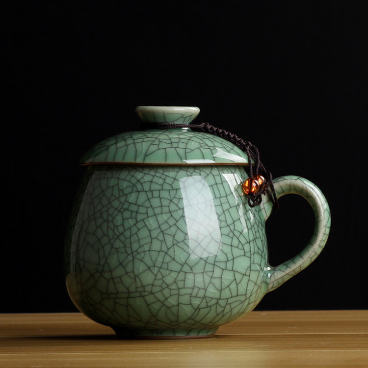📚 青瓷茶杯哥窑冰裂男女办公复古喝水杯陶瓷家用礼品汝窑定制马克杯