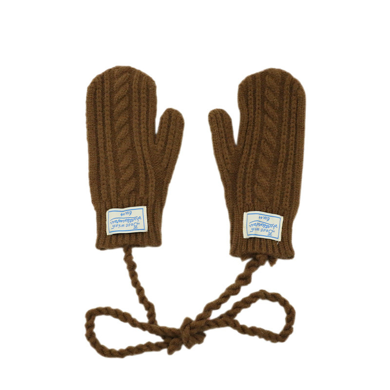 📚 可触屏多巴胺毛线连指挂脖手套女秋冬季带绳全包户外保暖防寒红色