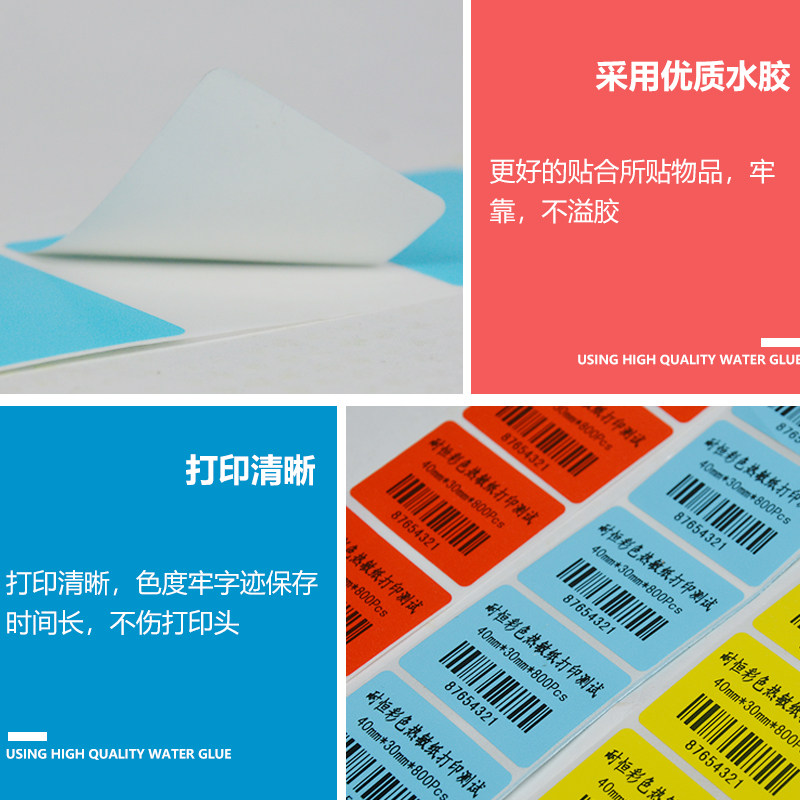 📚 便携式彩色三防热敏纸标签纸100 90 80 60 50*30 40 20 30mm条码纸彩色不干胶标签打印纸小卷芯