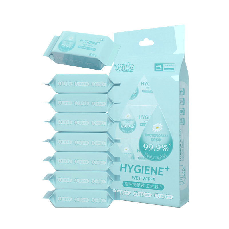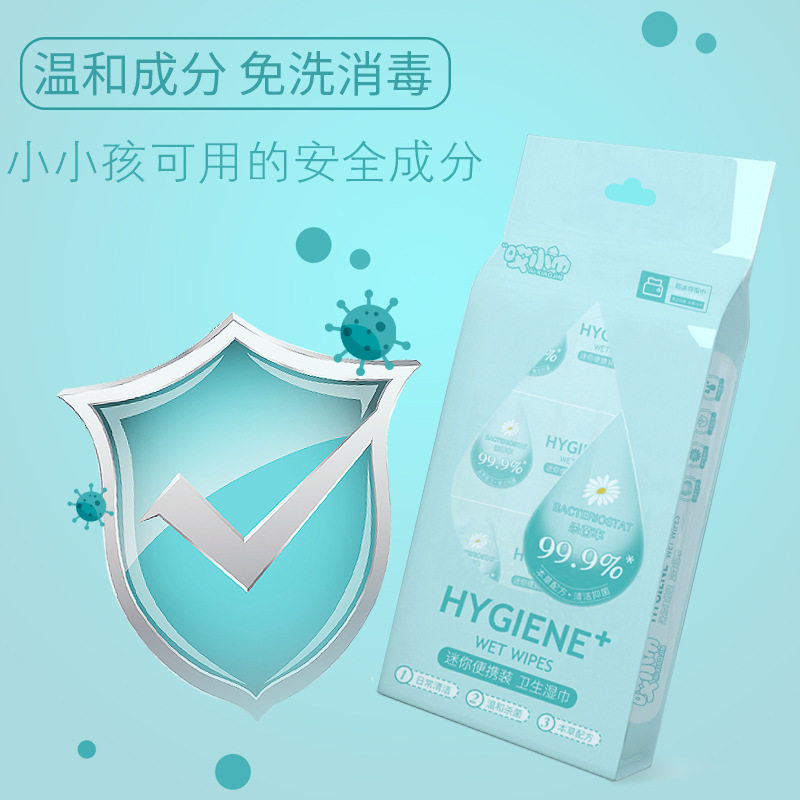 📚 哎小巾8包一提每包8片共64片迷你湿巾儿童学生便携清洁消毒湿纸巾