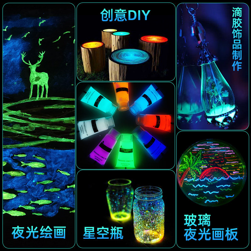 📚 超亮手绘白色夜光防水透明荧光液水性发光颜料荧光粉制荧光涂料漆