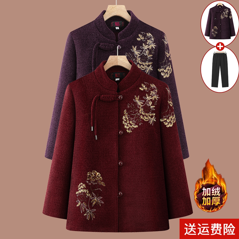 📚 奶奶冬装棉袄女中老年人秋冬季女妈妈装加绒加厚外套老太太棉衣服