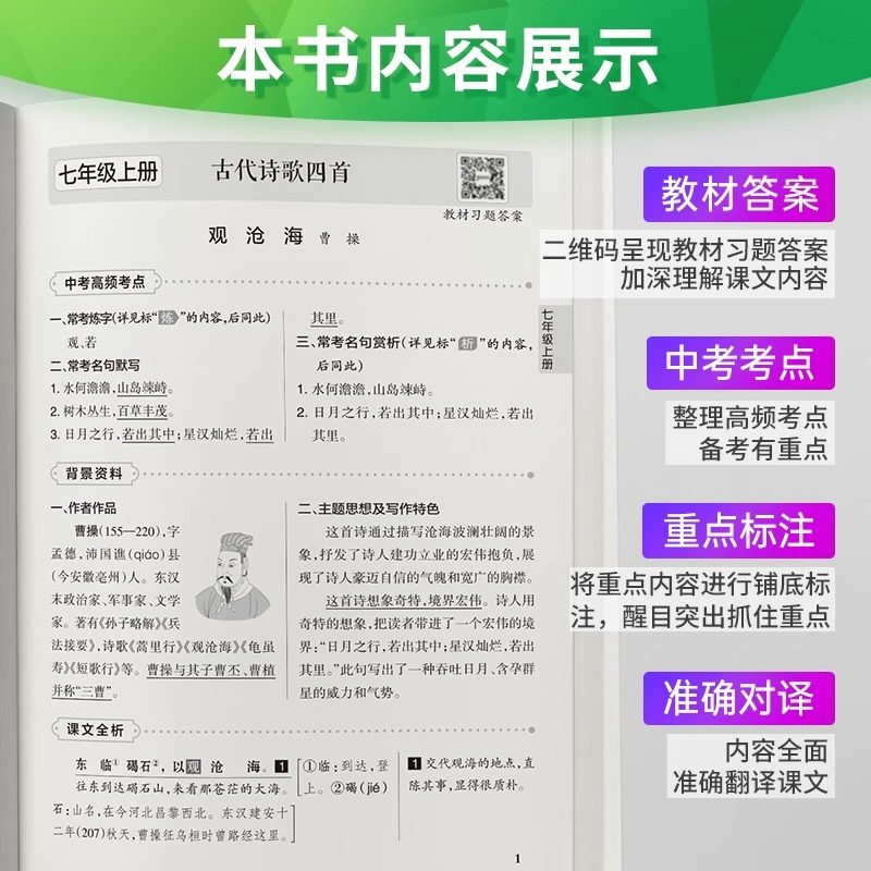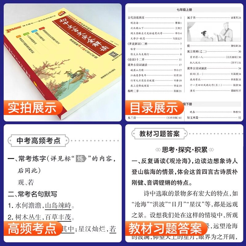 📚 初中文言文完全解读人教版语文必背古诗词七八九年级绿卡必背古诗文大全集译注及赏析中考课外阅读训练图文详解全解翻译全析一本通