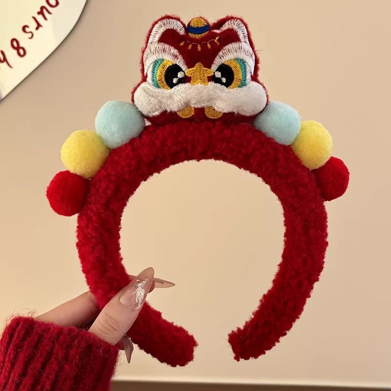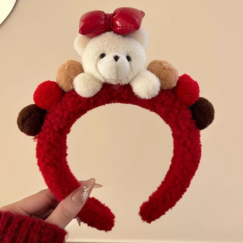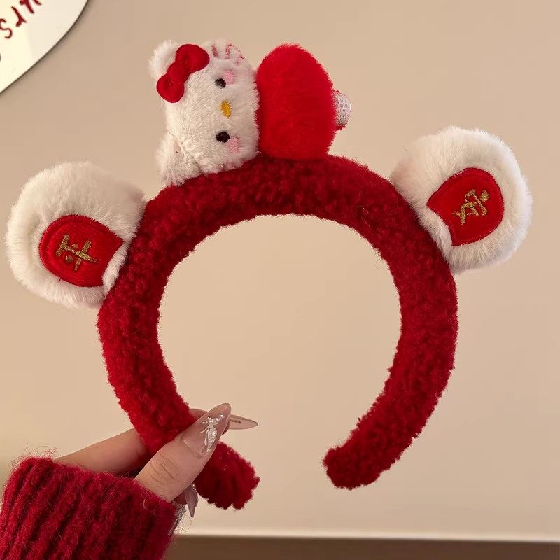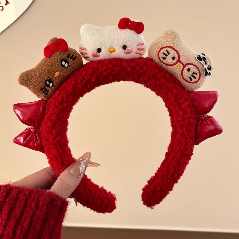 📚 可爱红色平安Kitty猫毛绒发箍女款化妆头箍外戴洗脸新年头饰发卡