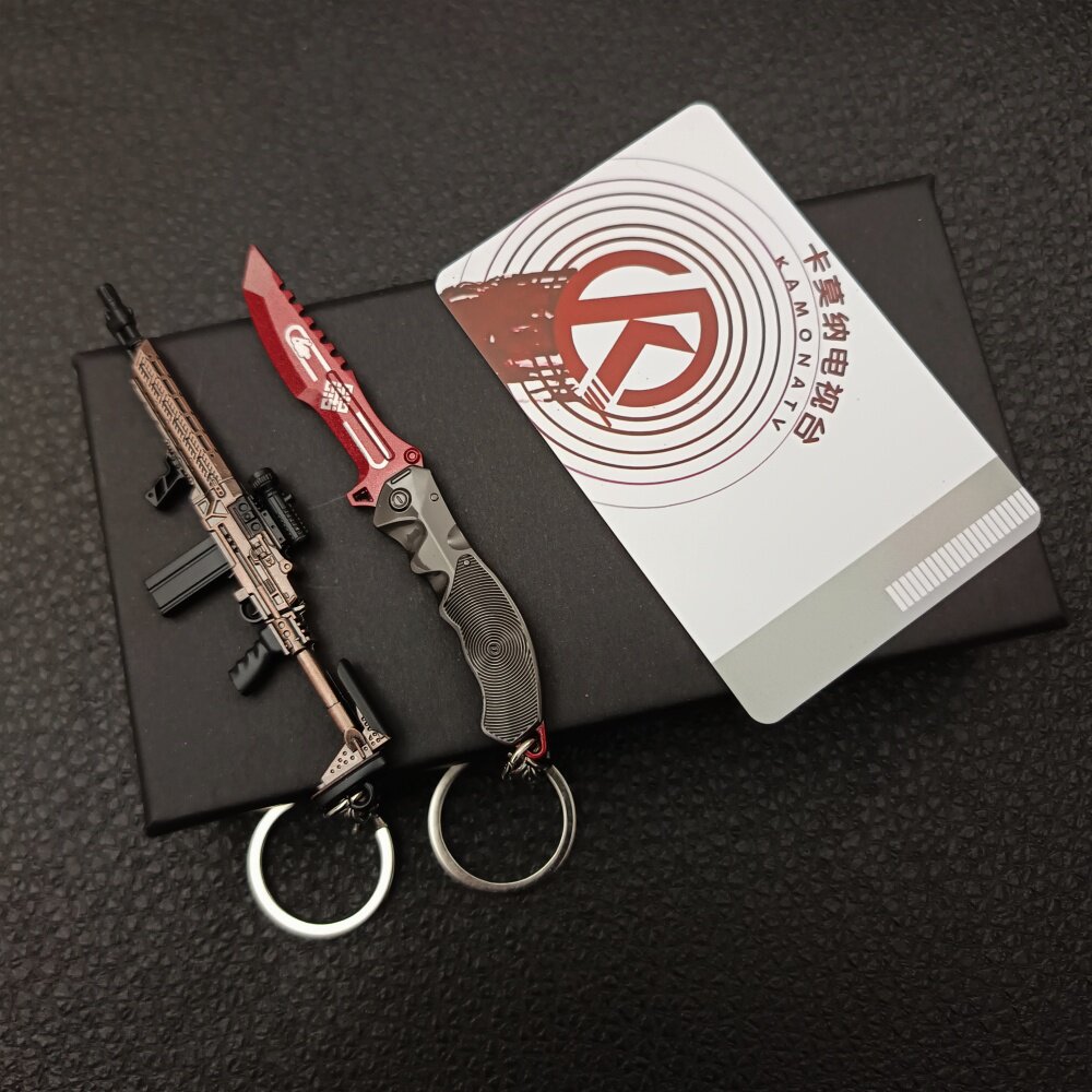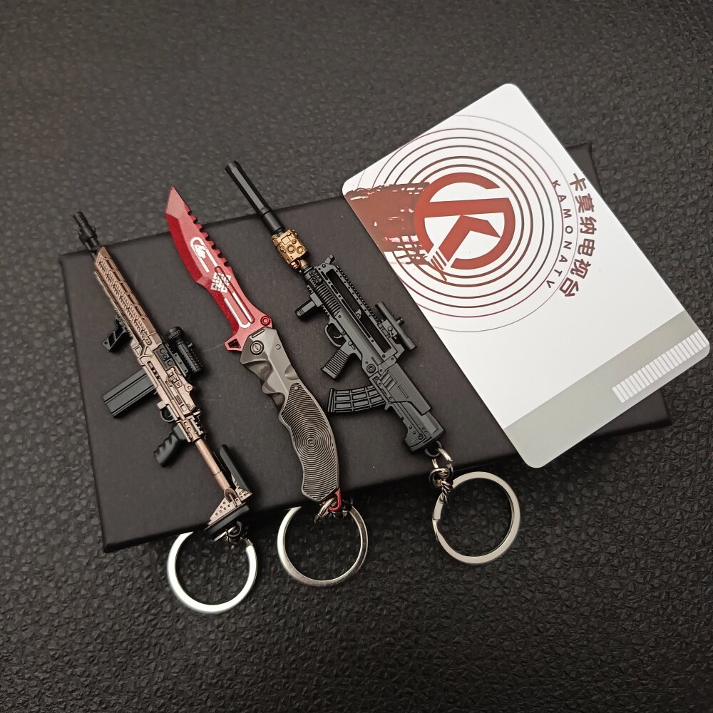 📚 暗区突围枪扣礼盒装 瑞兔小刀 迷你MK14 法老枪 钥匙扣金属玩具