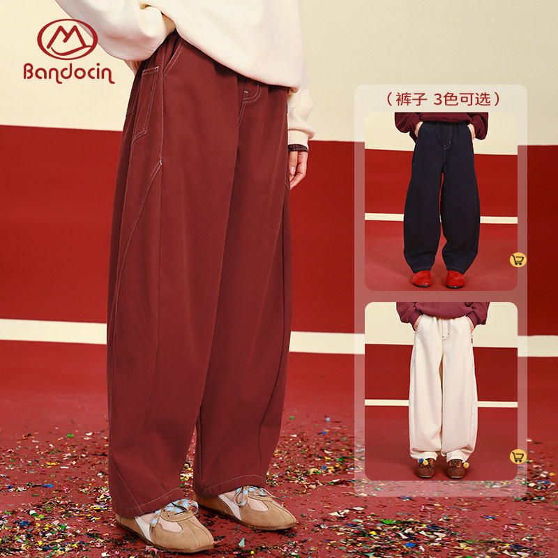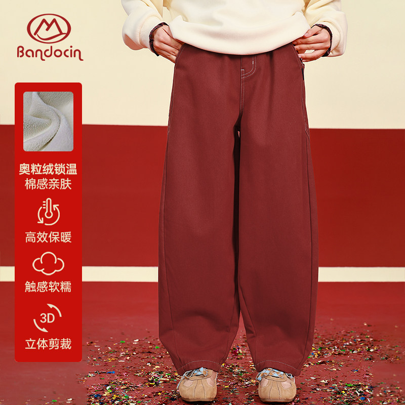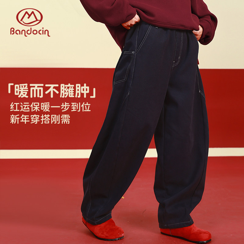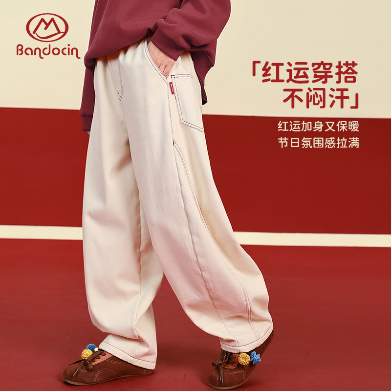 📚 半度闲女童年装红色加绒运动裤子洋气加厚新款儿童冬季保暖喜庆裤