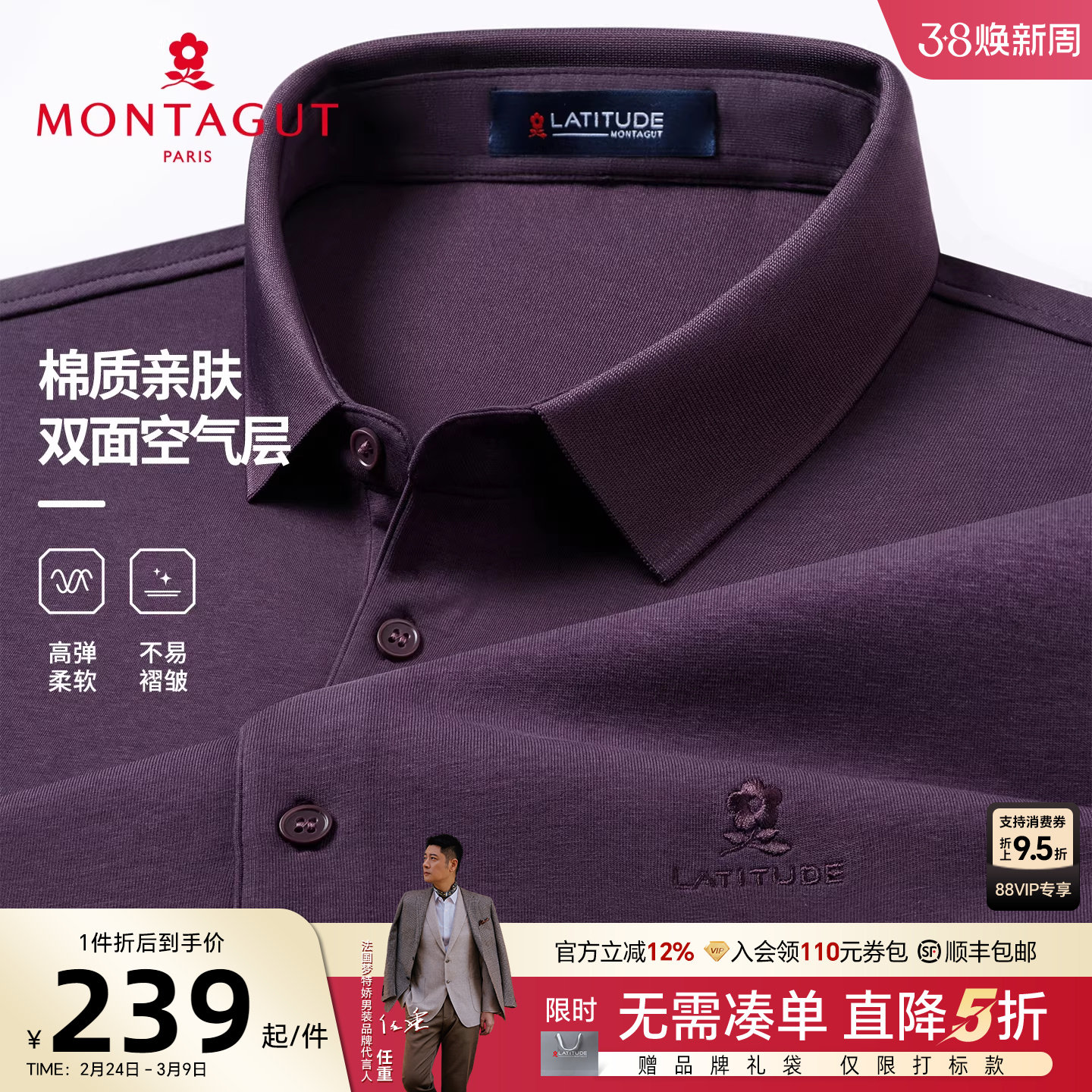 17¥ HU293 e4InUq3A1Ro¥ https://m.tb.cn/h.iZqOlHJ [液氨丝光棉]梦特娇长袖Polo衫男士26春款纯色棉弹婚宴装翻领T恤J --------------------- 【原售价】538元 【现售价】478元。